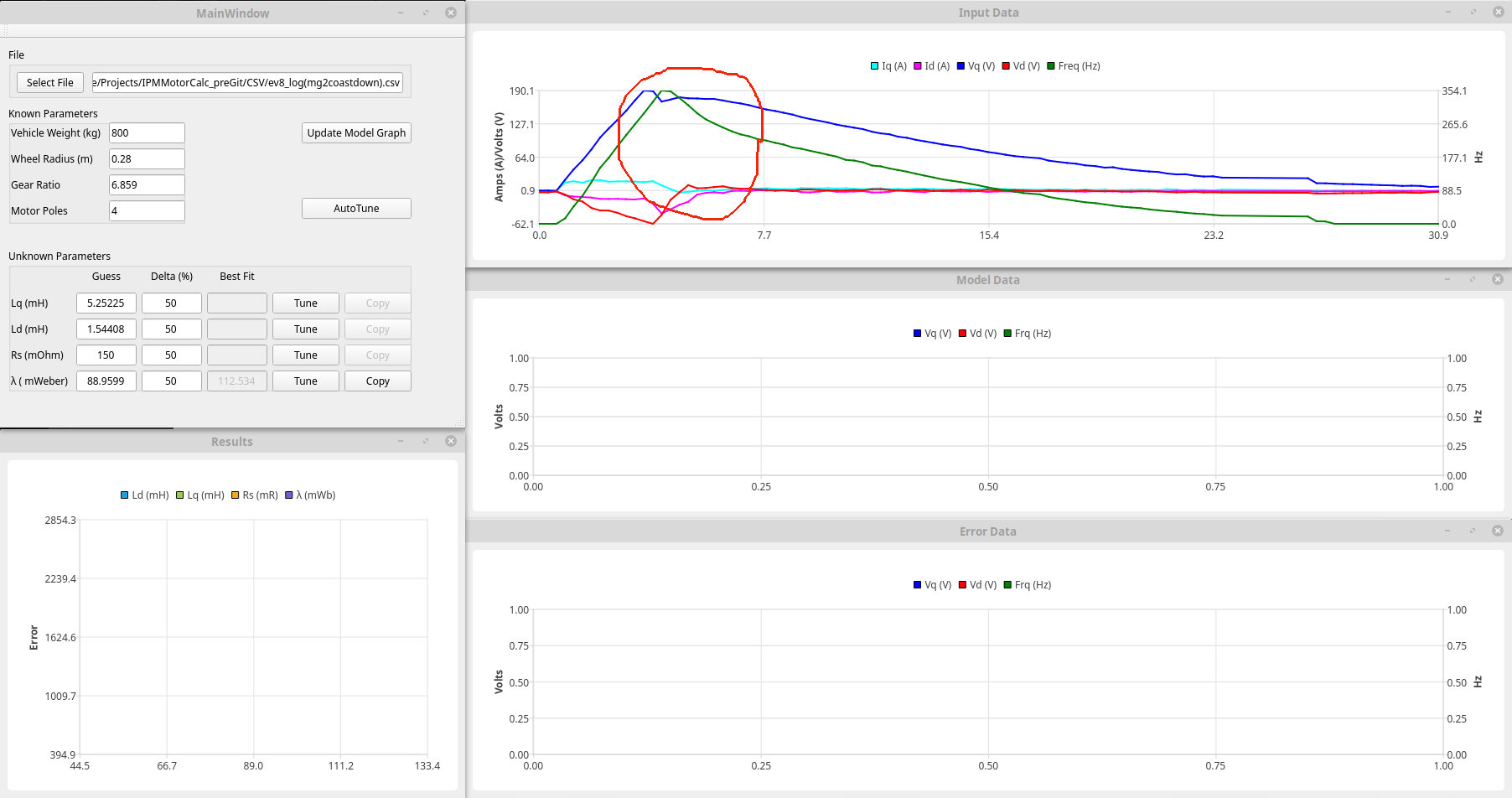 Just been looking at your MG2 data. I wasn't expecting there to be enough information in it to calculate Lq and Ld but it has come up with a pretty repeatable Lq=2.3mH and Ld=0.87mH. It will be interesting to see how much different the normal driving log is...