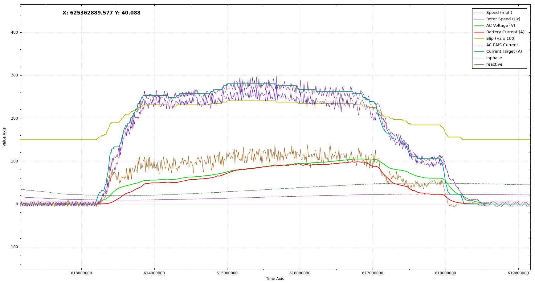I loaded the inphase and reactive current logging firmware into my car today and went for a drive. Here are some results.