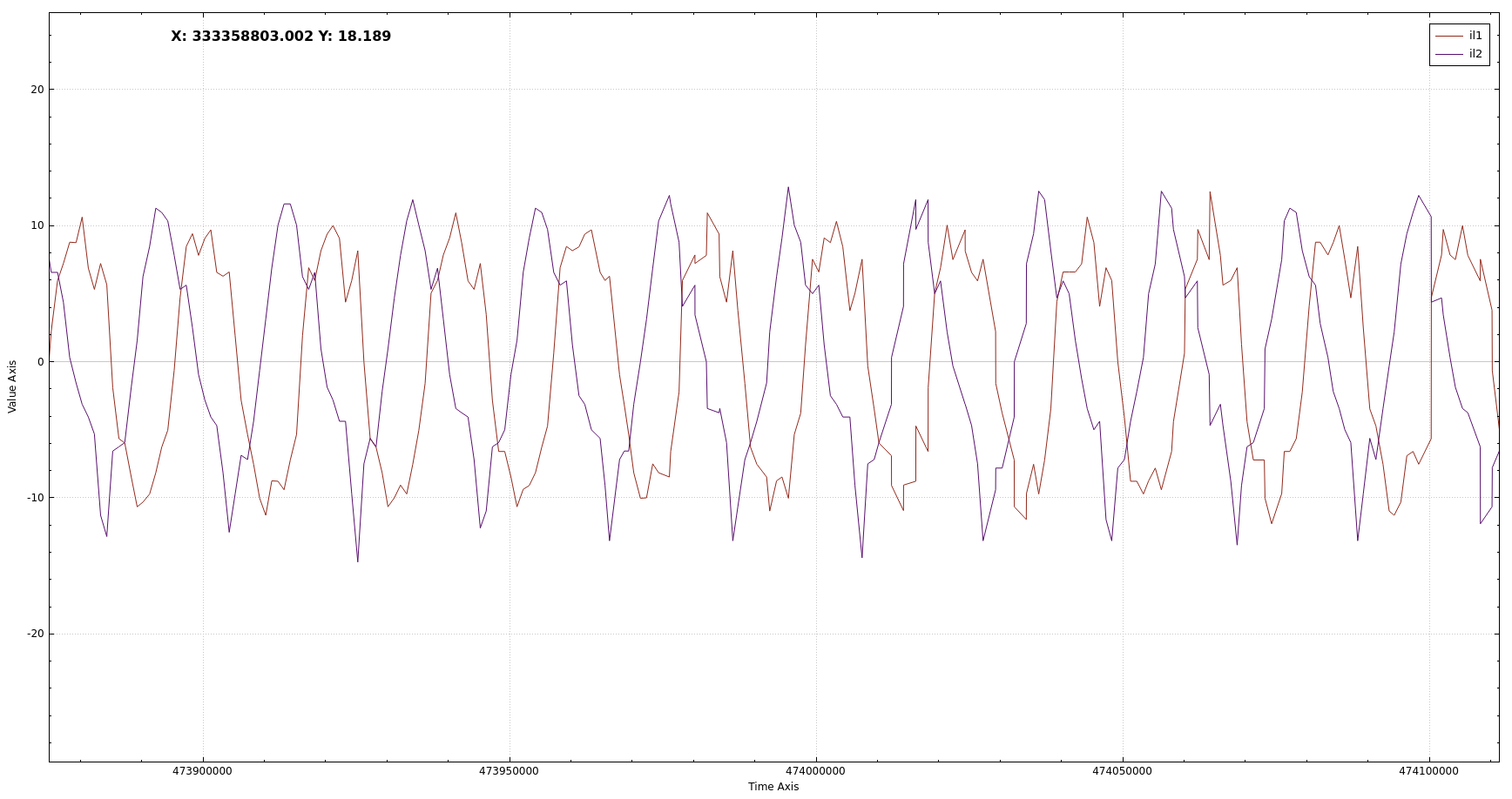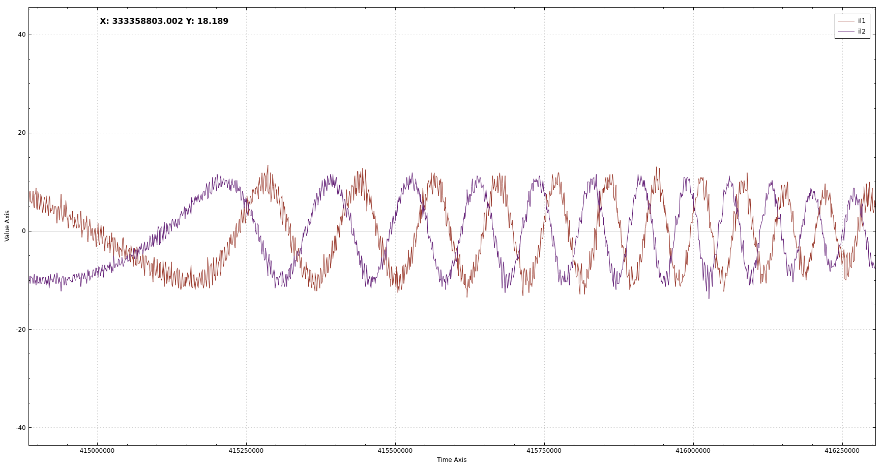 The first question I had was how the phase currents differed from the phase voltages. It seemed that the best way to represent this was with two-dimensional plots. Then, rather than having to plot two-dimensional voltage, and two-dimensional current separately, and try to compare them, I decided to rotate the current measurement by the voltage angle to create a two dimensional plot that directly represents the two-dimensional difference between commanded voltage, and measured current.