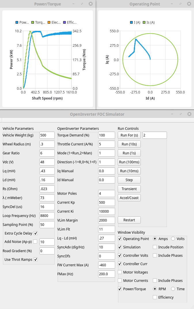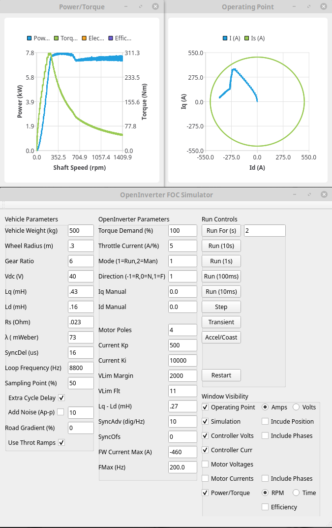 1. Wrong parameters - flux linkage in particular has a big effect on torque. If anyone has a running Leaf/OpenInverter setup with a web interface some csv logs would be very useful to verify we have the right settings - see viewtopic.php?t=3047
