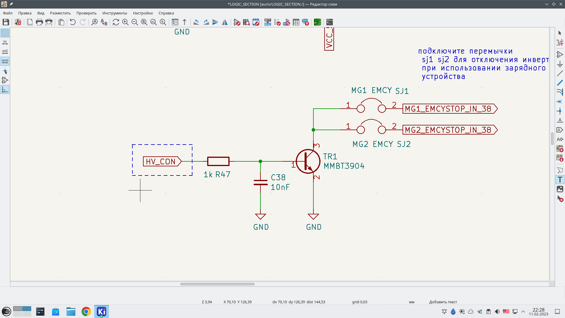 Yahha777 wrote: Sat Feb 11, 2023 10:22 am Yes that's right. HV_CON shorts the low side of the voltage to the high side. And when it is active, the STM-32 controllers should generate PWM for the motor. And in this version they are blocked. Do you suggest connecting the base of the transistor to the HV_CON pin?