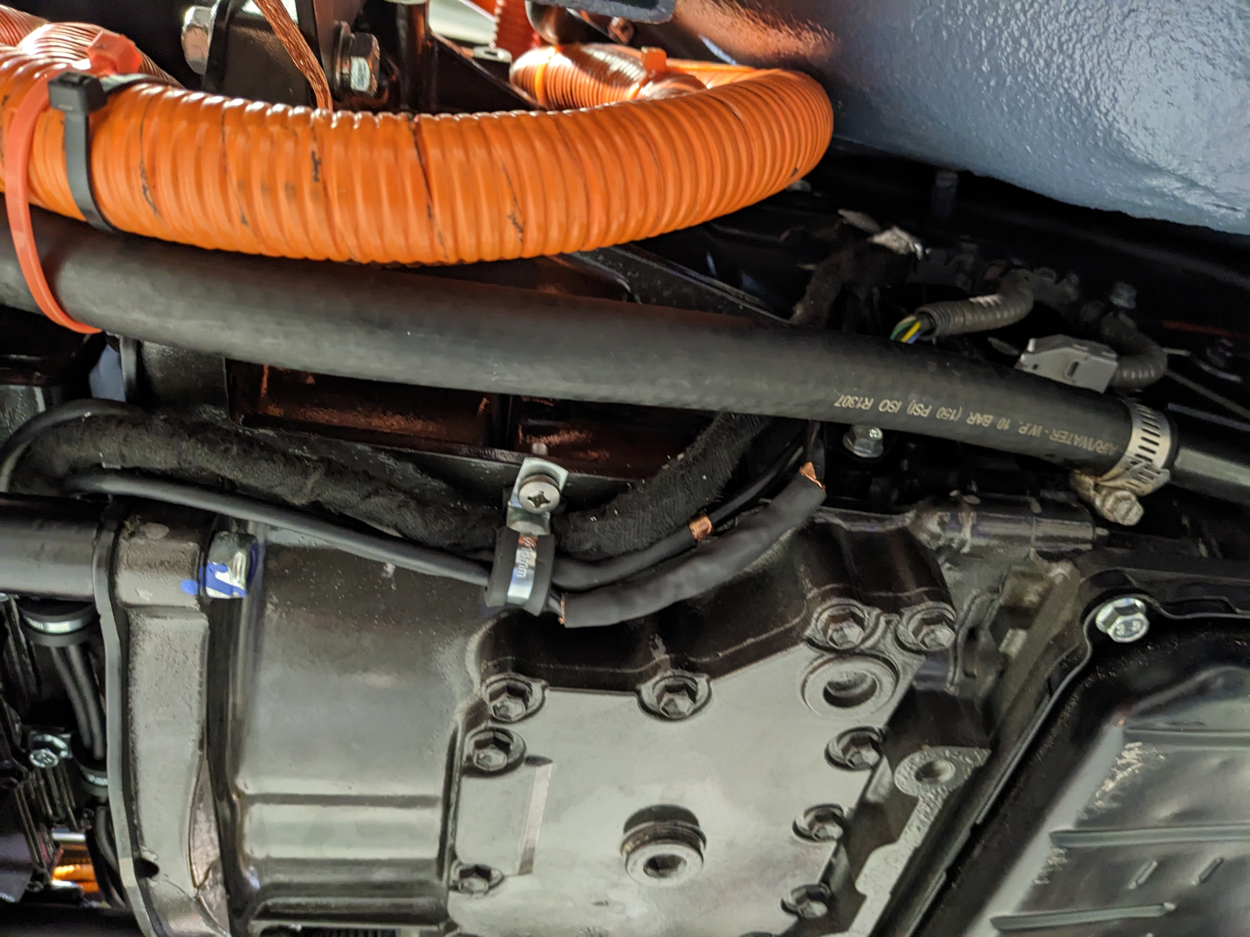 I moved the encoder wires as far away as possible from the HV cables going to MG1 and MG2 ... The inverter is mounted about as close as it can be to the gs450h.