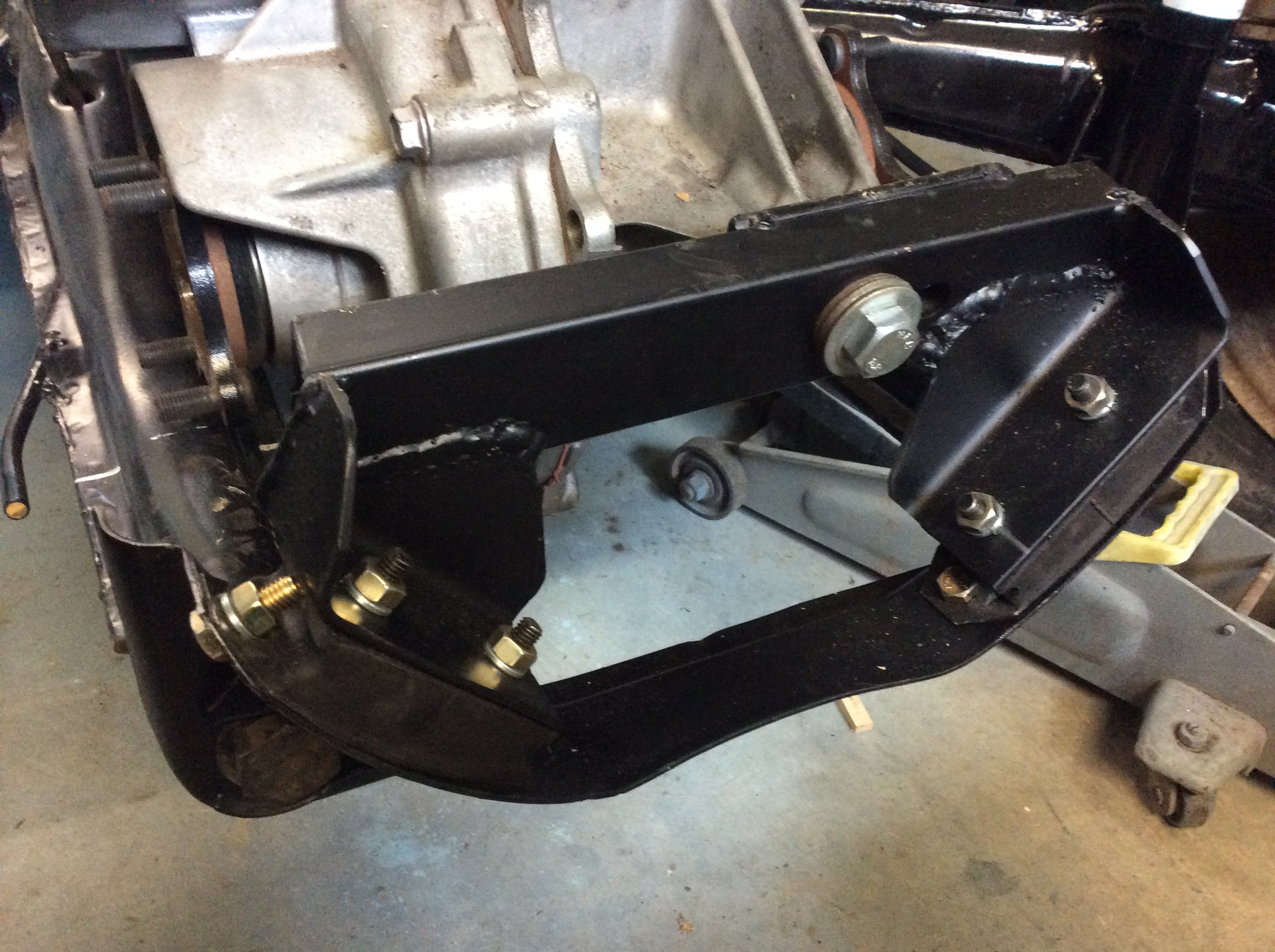 The floor pan is now sitting on its own wheels again with the MGR installed on its new mounts. There were no structural modifications to the Beetle ‘horns’ and the motor has just a slightly raised front and about a 10mm offset to the left. I was expecting to have to source some shorter ‘racing’ half shafts but with the rear suspension now rebuilt it has been possible to do some accurate measurements and the current plan is to shorten the right hand MGR stub axle by some 10mm (they can be prised out with little effort) weld on a 10mm plate which will then have a recess machined into it and 6 @ M6 holes tapped to match the original VW CV joints. The left hand will need to lose 20mm with a similar 10mm plate. i Original engine mounts have been used so, as with the original Beetle motor, replacement couldn’t be simpler. Remove the electrical connections, disconnect the CV joints and there are just 4 bolts securing the motor to the body!