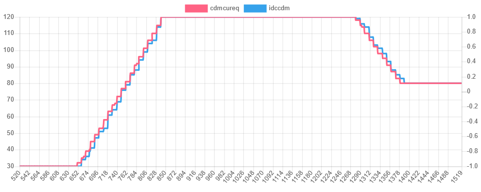 royhen99 wrote: Sat Apr 01, 2023 4:09 pm I should have spotted this earlier but the code was using hv_enable_out to control the relay. This is for HV junction box control so was doing nothing. I have disabled this output and used the correct pin which was not very helpfully called, extra_out. My bluepill setup is not working properly so I can not test this code, but it runs on another board although all the pins including CAN an USART are different. Sending shunt voltage and current from SavvyCan I can get a current ramp on cdmcureq by changing the target current.Chad_I_ramp.png