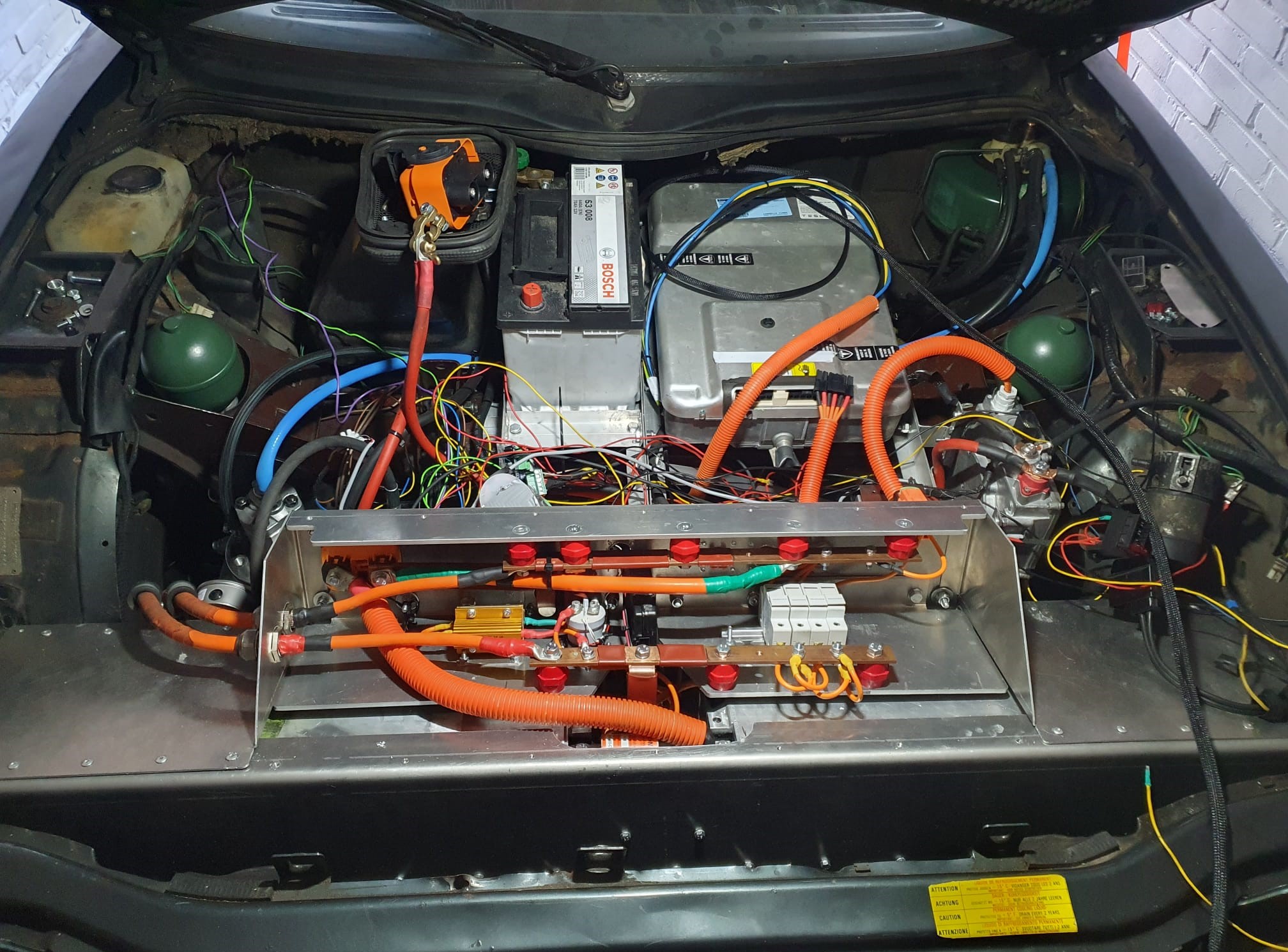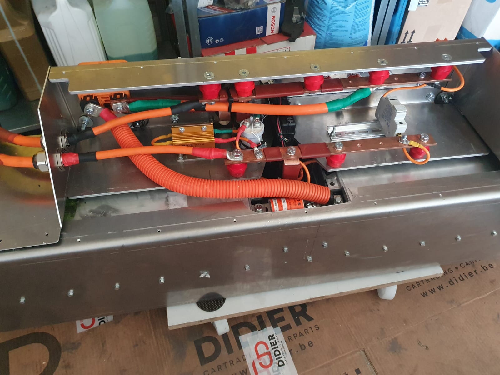 Probably, I bought a batch of bad modules; that's why I am going with 5 modules (4 in front, 1 in back) as a start. This also saved approximately 100kg of weight. But this will reduce the voltage to (nominal) 220V. I understood that the Tesla Gen2 Charger will work above 200V, so that will be OK. Only the dcdc has at the label: input 220V–430V. I don't know yet if the dcdc will work at 200V. At a later stage, I can install the other 3 modules and go to 350V.