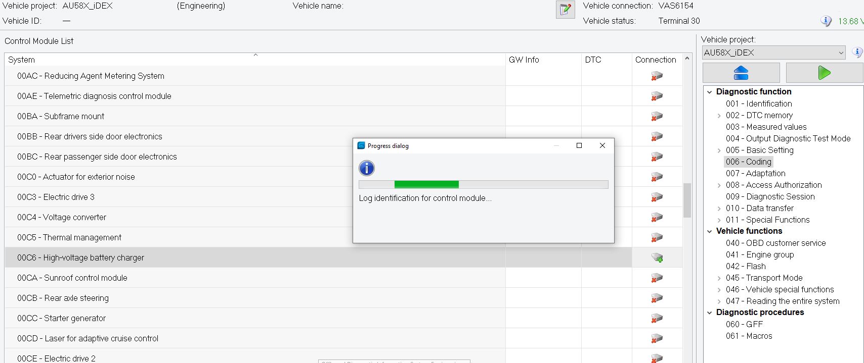 I primarily use Porsche PIWIS tools, and since the Taycan uses a similar charger, the engineering and coding options match up.