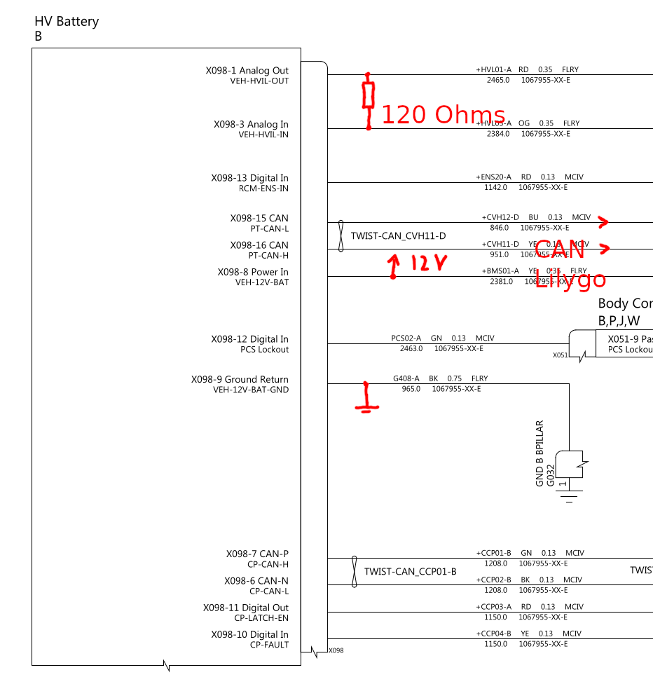 I’m really struggling to get my contacts to close too using evcontrols controller, did your schematic you put up with your jumpers and resistors end up working out for you? I believe I have the same problem you had with the 20mA current not being activated because I’m getting some faults that I can’t figure out how to clear and I am not getting any voltage out of my HVC to the shunt and contactors. Any help would be greatactuallyali wrote: ↑Tue Sep 12, 2023 7:15 pm Hello everybody! I am trying to turn a a M3 battery from the scrapyard into a solar home battery and having trouble getting the HVIL satisfied... Here's what I tried: