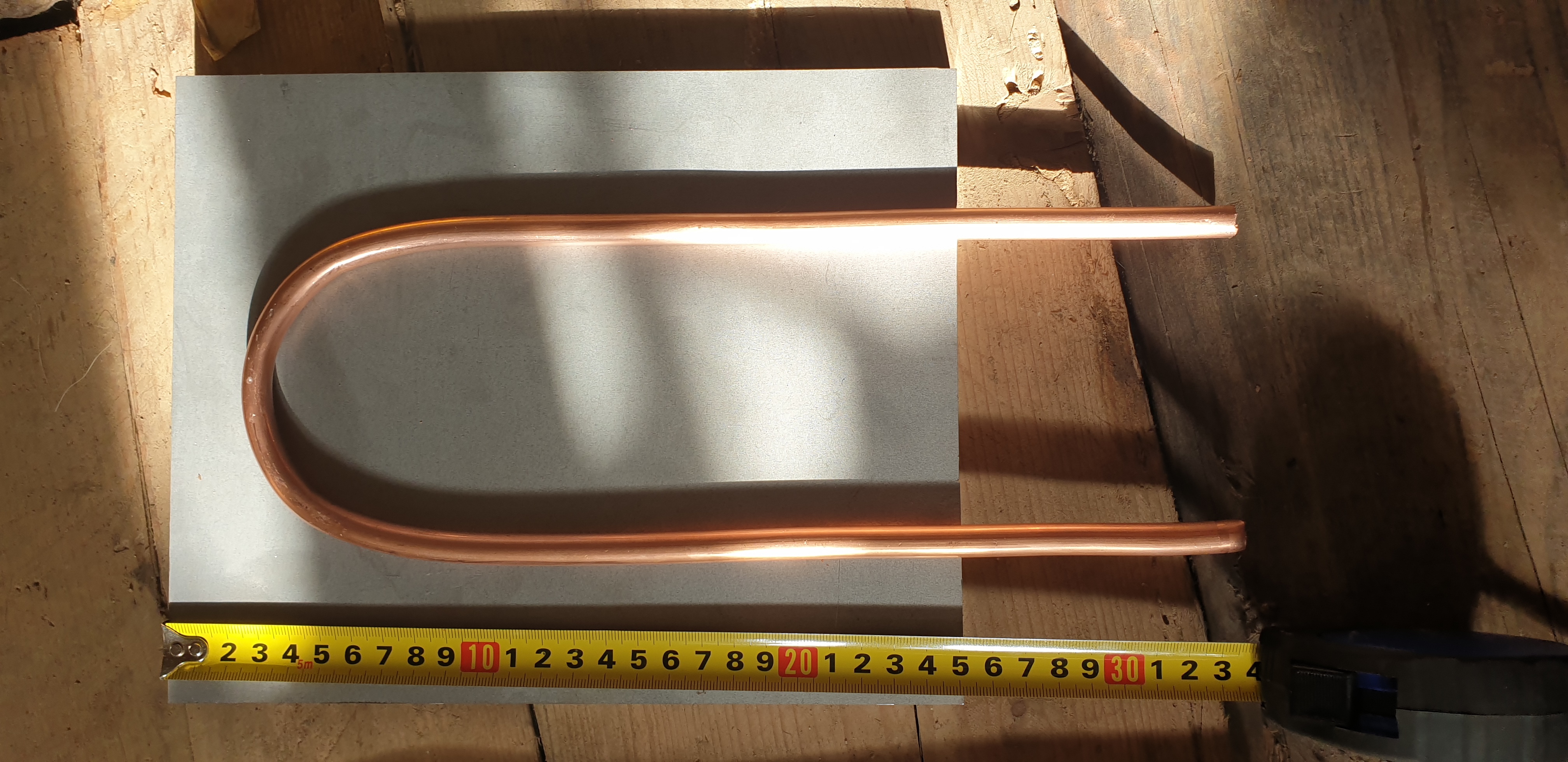 Copper tubing is easy to get and i can bend it at home. Alu plate is also easy to machine and i can get 8mm alu strips cut at local metal workshop.
