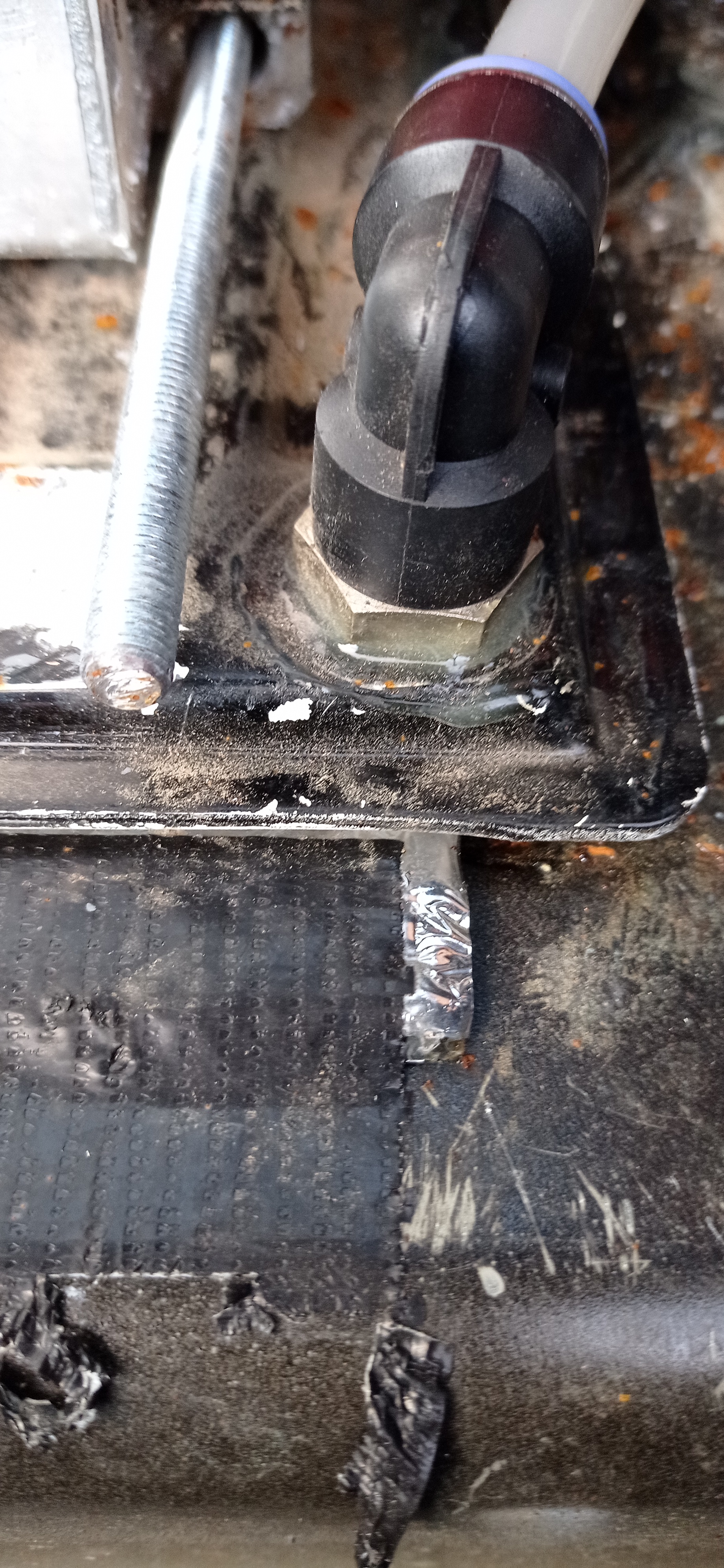Not very good pictures I am afraid, everything is buried in the boxes. The elbows I used are 90 degree for 12mm plastic pipe (not 8) with a 1/4 bsp thread, available on ebay. The plugs are flush fitted. Top picture is a render of the front battery box.