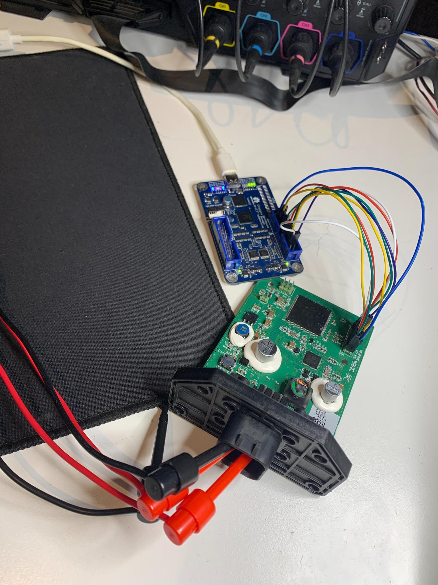 Luckily we used the same controller family 10 years ago in a professional project, and the "blue box" debugger from ISystems was still flying around. The connector matches directly, so it was just plug &play