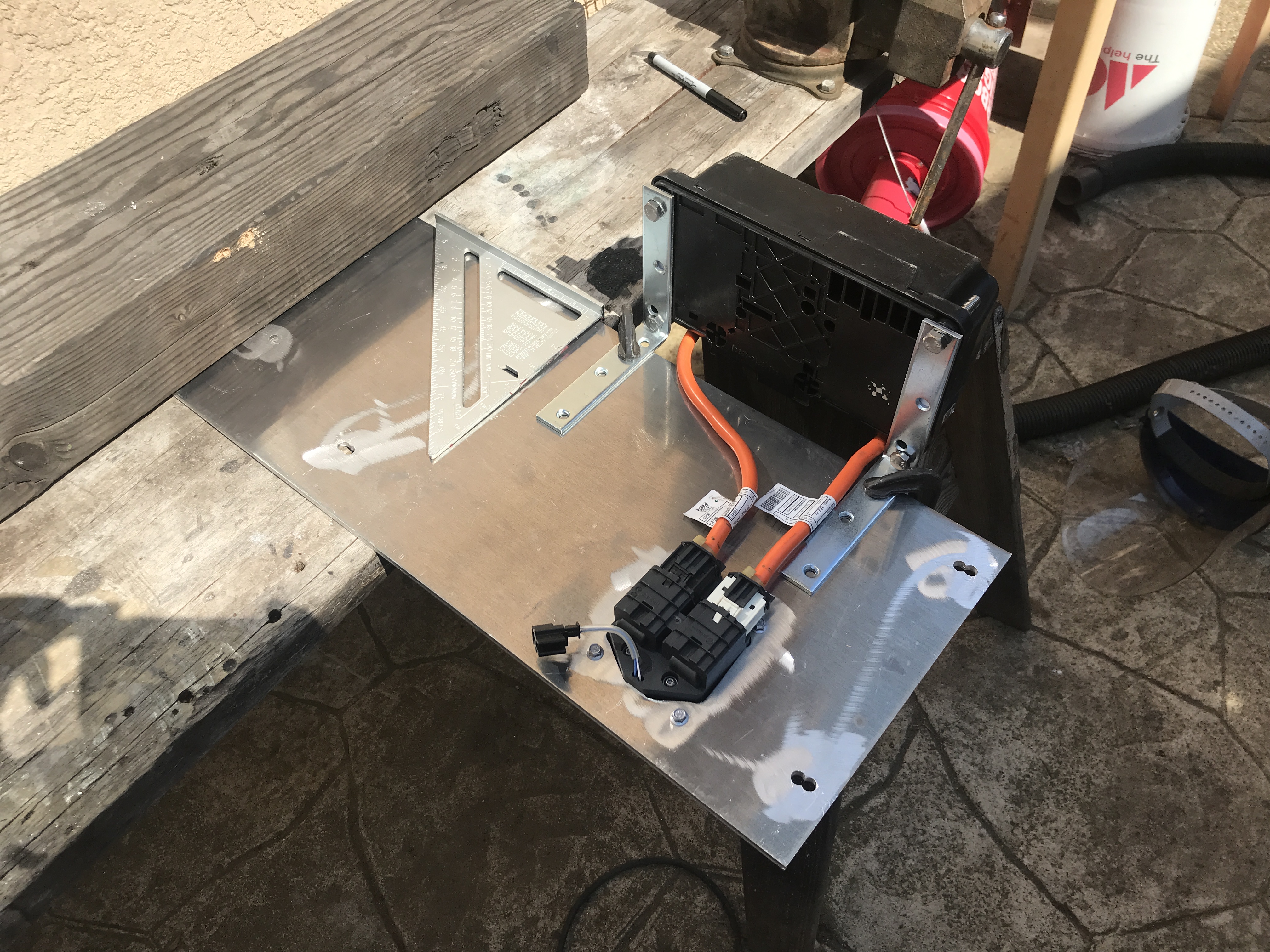 with the plumbing done and the pump pumping it was time to affix the first gen Chevy Volt onboard battery
