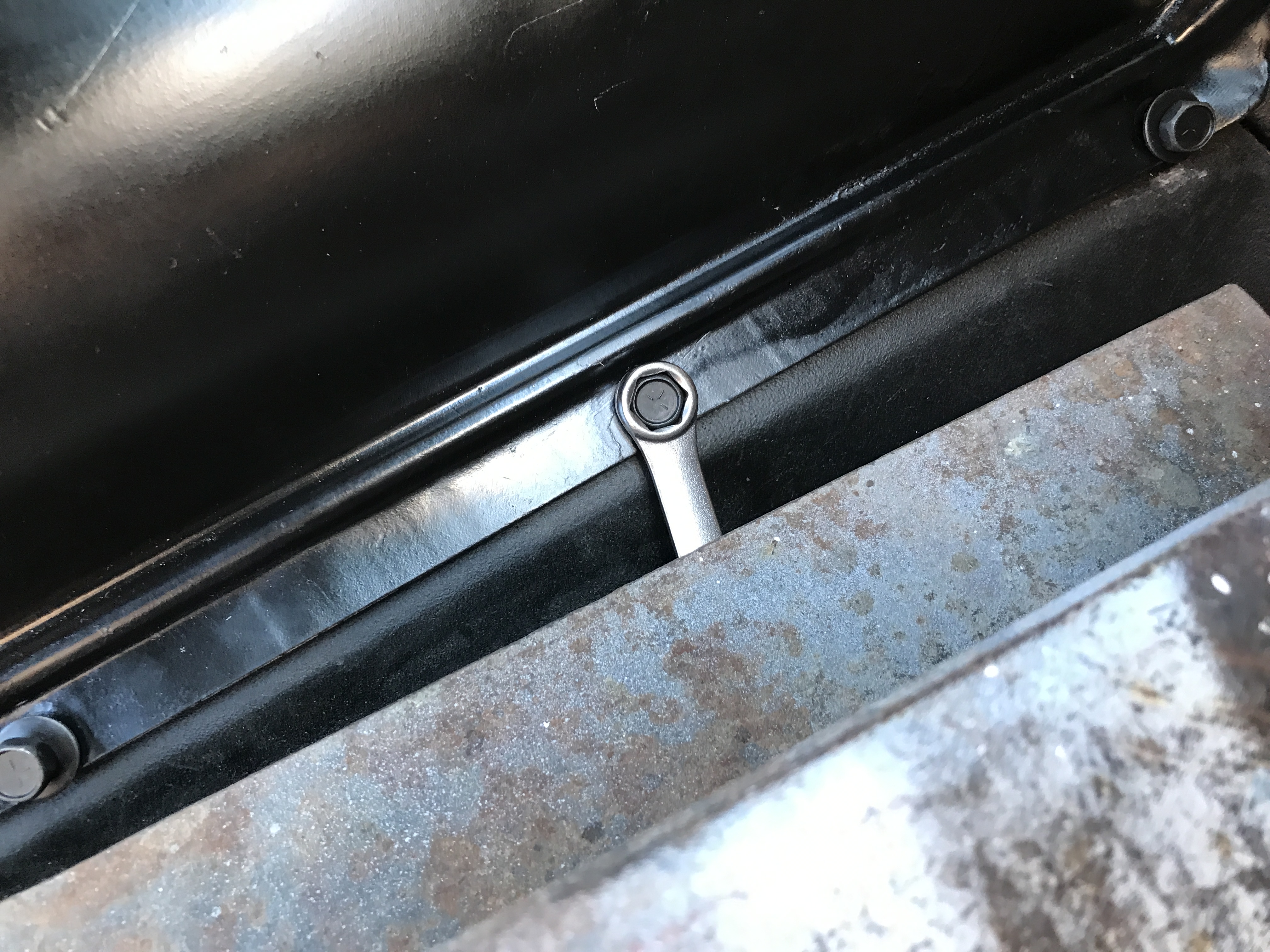 with that connector removed the bus bars need to be rebolted together, I used the old painter tape trick to keep the 10mm nut from falling into the abyss