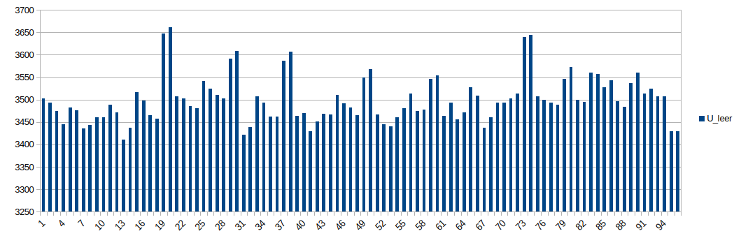 I then calculated the distance between the lowest and highest voltage. The lower the difference, the more life should be left in the cell: