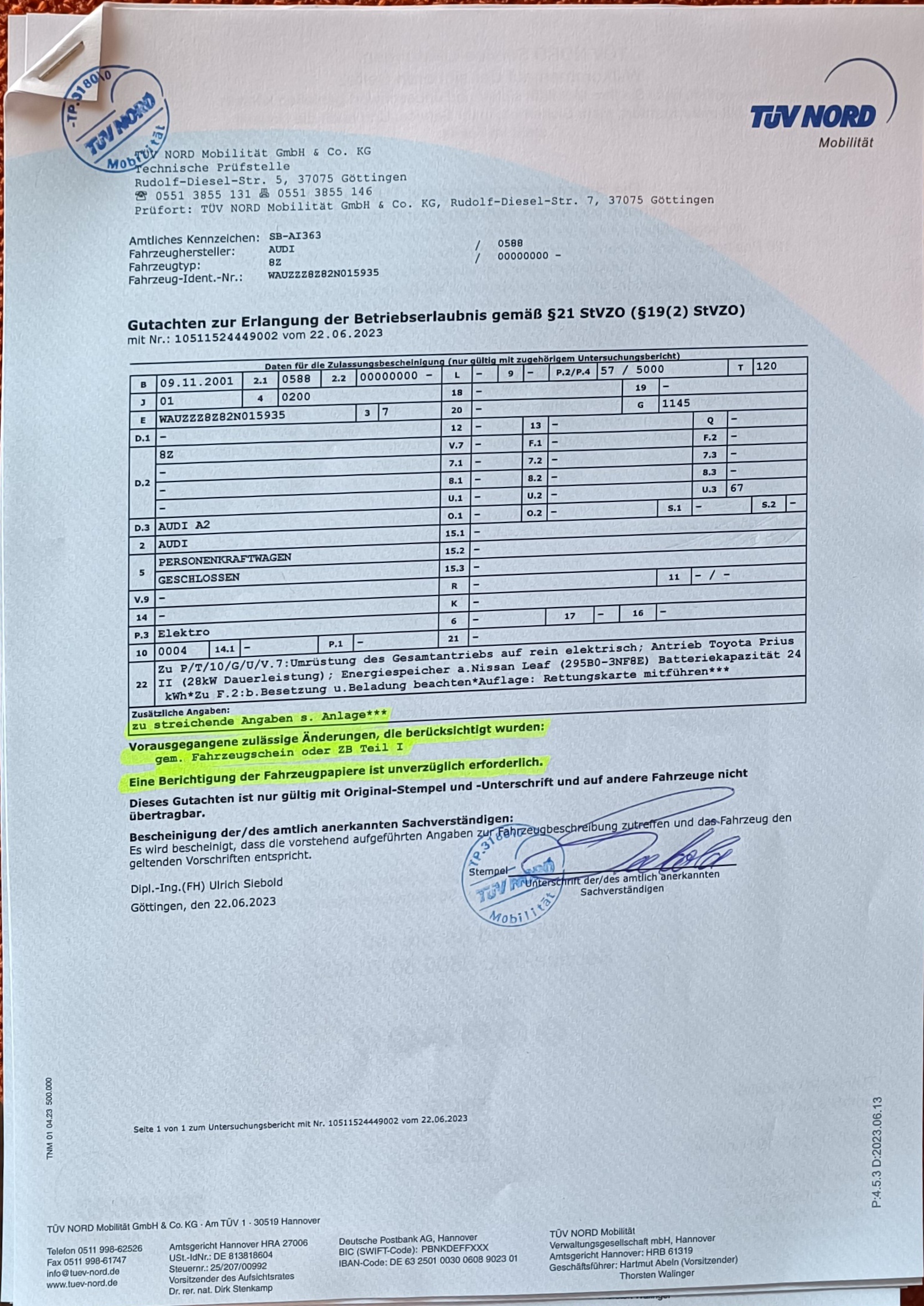 I asked again about EMI certificates. He now confirmed that the car can be any year as long as the drive components (motor, inverter) belong together.