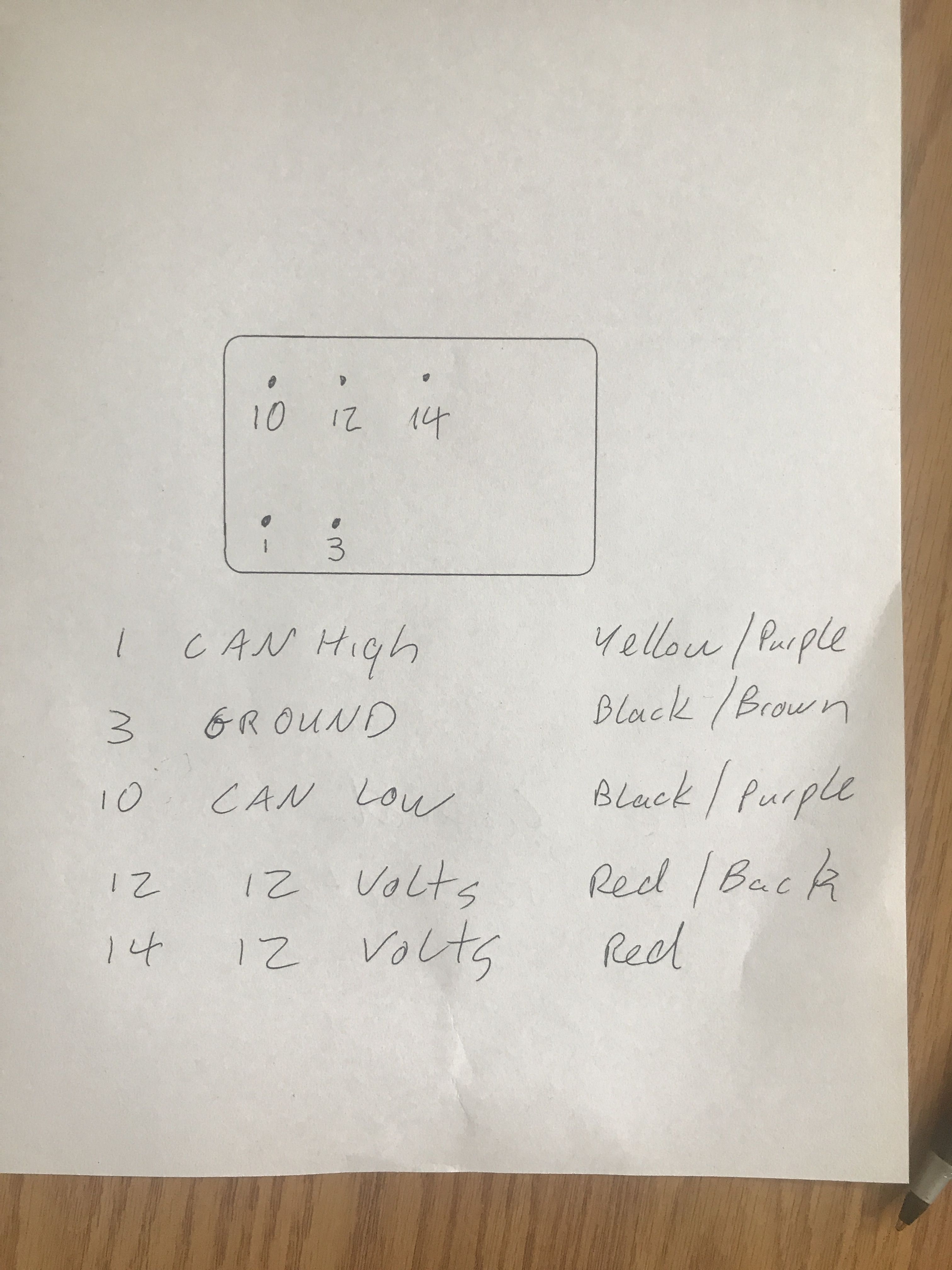 royhen99 wrote: Sun Jun 18, 2023 2:57 pm It needs four links on the black connector 10 - 13 CANH, 23 - 26 CANL, 16-18 0V and 1 - 5 12V. On the external wiring loom red and grey/purple are 12V and brown is 0V.
