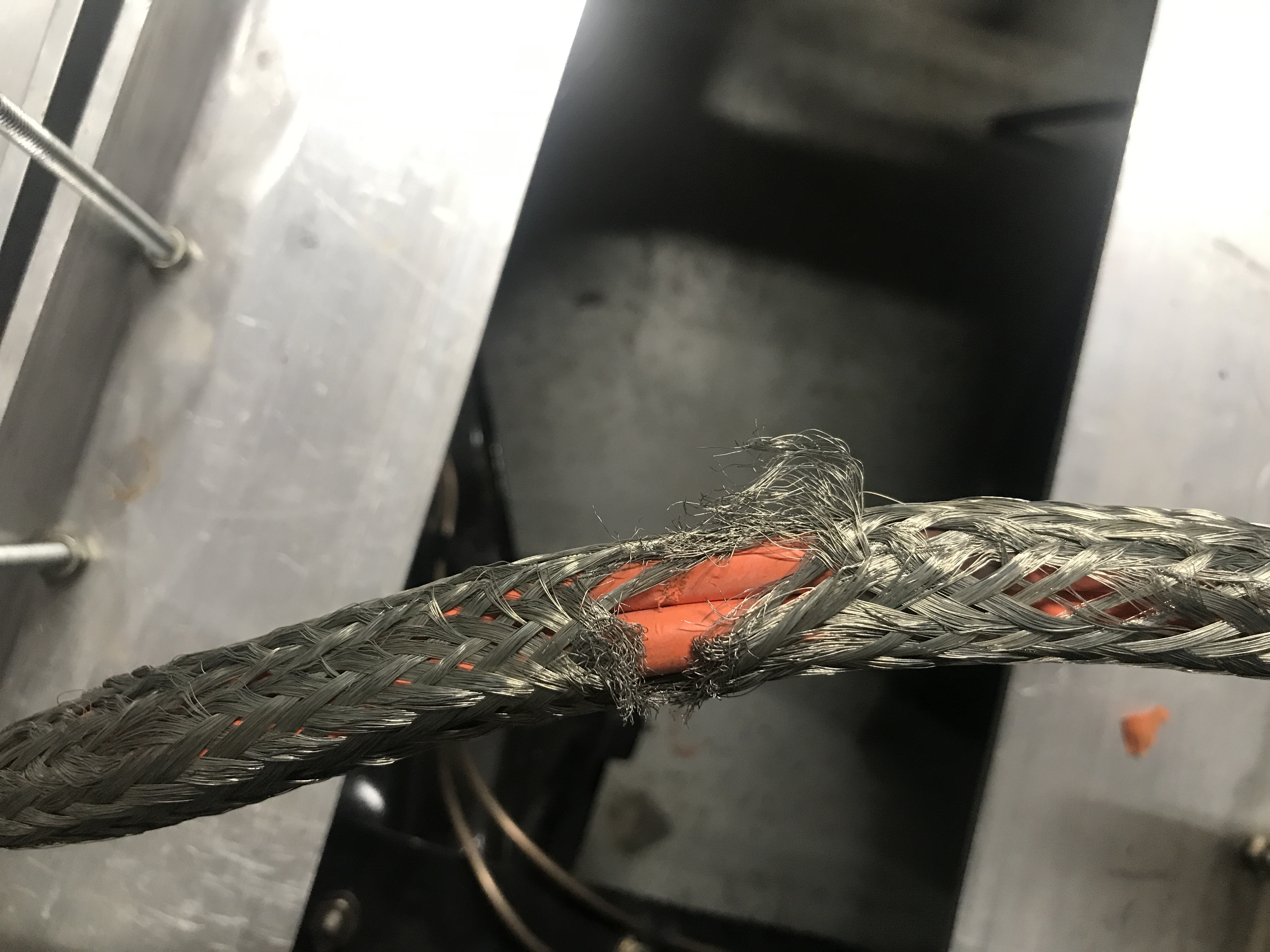 after removing the orange loom / conduit whatever you like to call it, we can see more of the damage to the shielding/reinforcement wire? please tell me what that stuff is