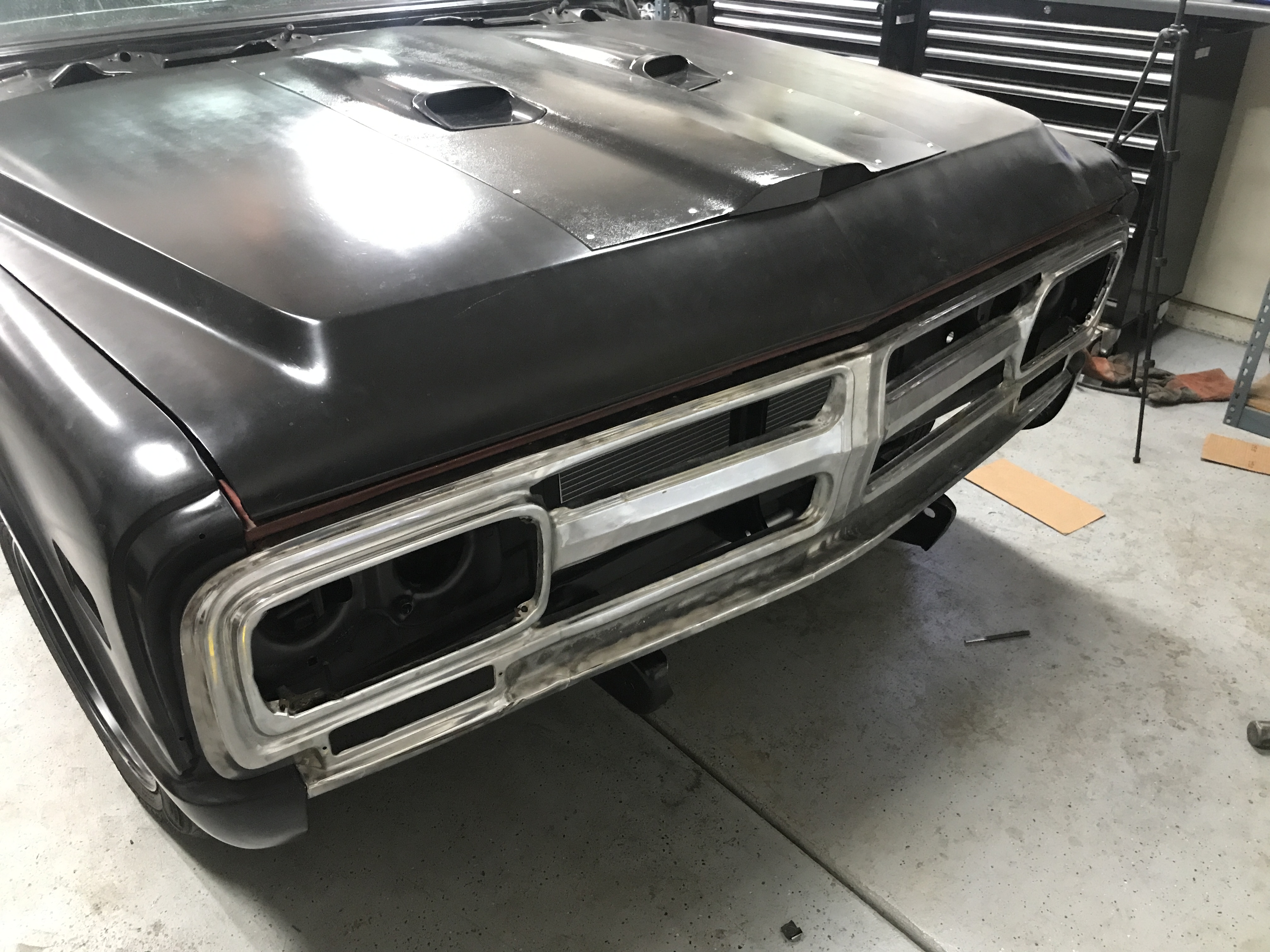 so need your advice, this is one of them faded '71-72 grills that had the innards painted black, should I paint that black again, or steel wheel the rest of the faded black off of it and just run it chrome?