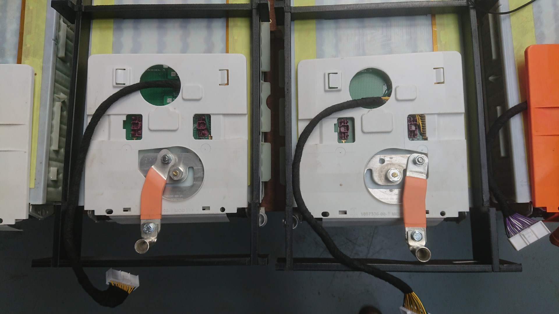 Trying to see if a full 82kWh pack will fit. This is the 12 module pack, and the larger modules means fewer new busbars compared to something like an I-Pace pack