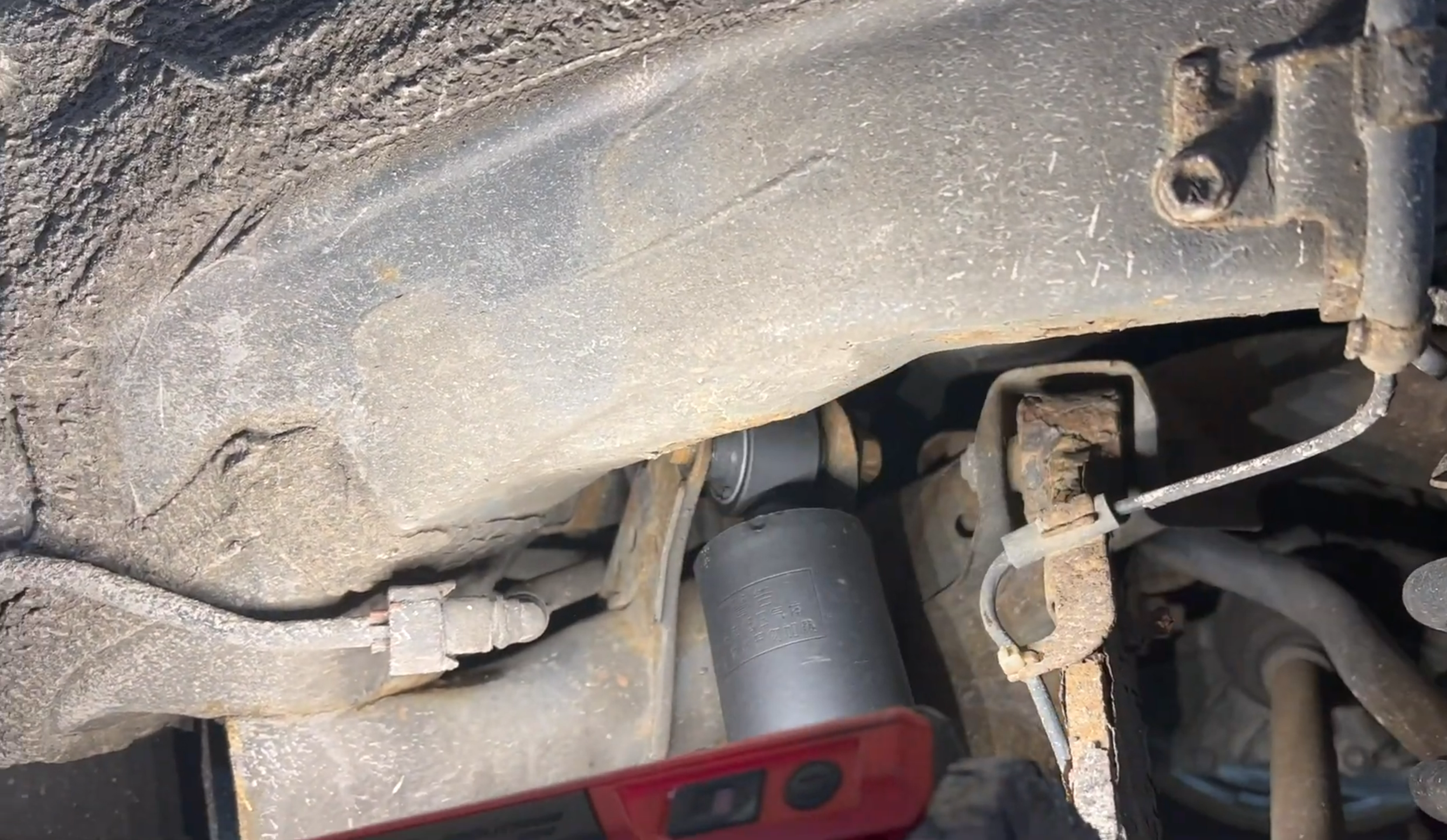 The arrangement of the petrol fill tube and vent plumbing above the LR tyre. This is where the OEM EV charge port wiring runs on my EV version.