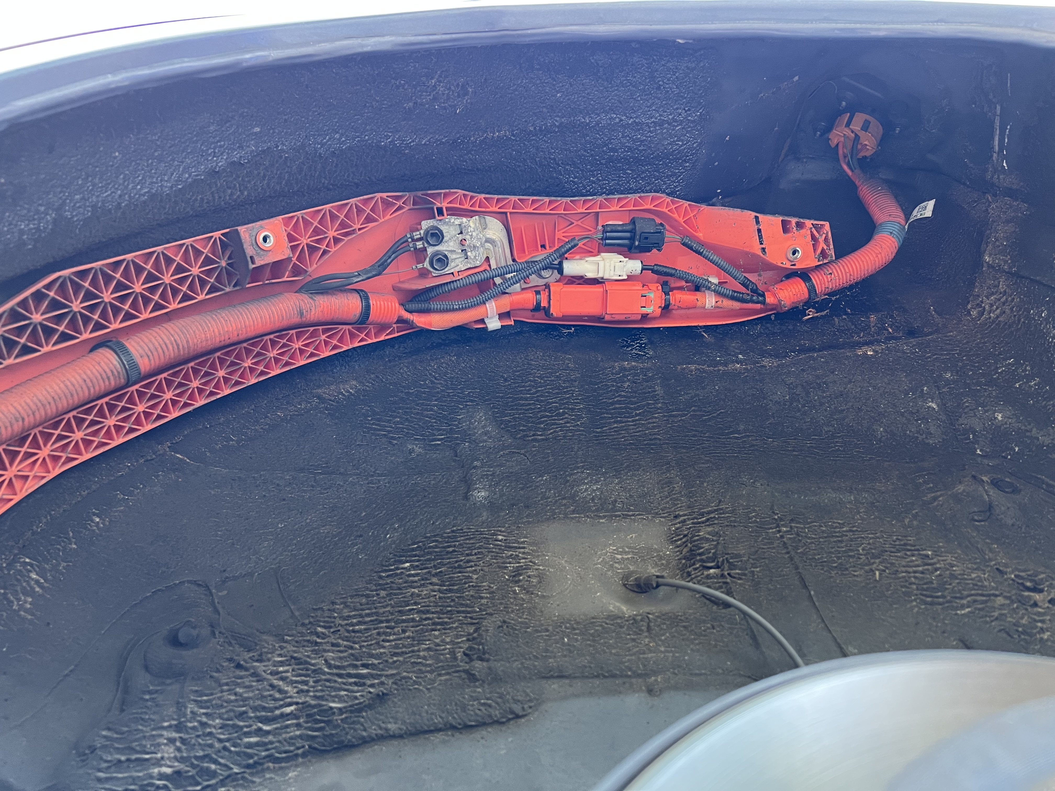 Nominally, this is to aid in fashioning a somewhat weather-tight charge port cubby up in the "attic" of the rear of the fenderwell. This will have to be cut out and something water-resistant fab'd: