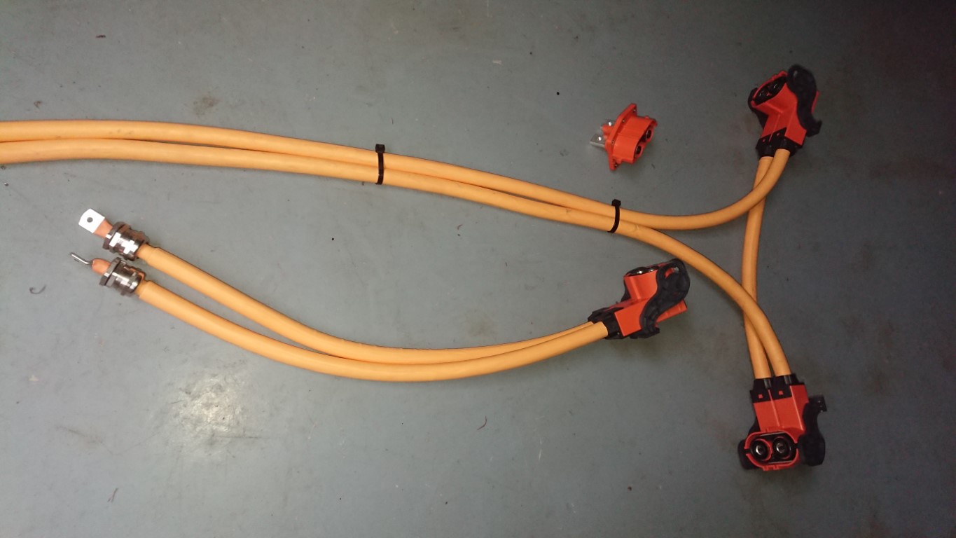 Amphenol plug and socket kits arrived so had them assembled into two loom sections. Main one connects the two battery boxes and runs to the HVJB in the engine bay. Second one runs from the HVJB to the inverter