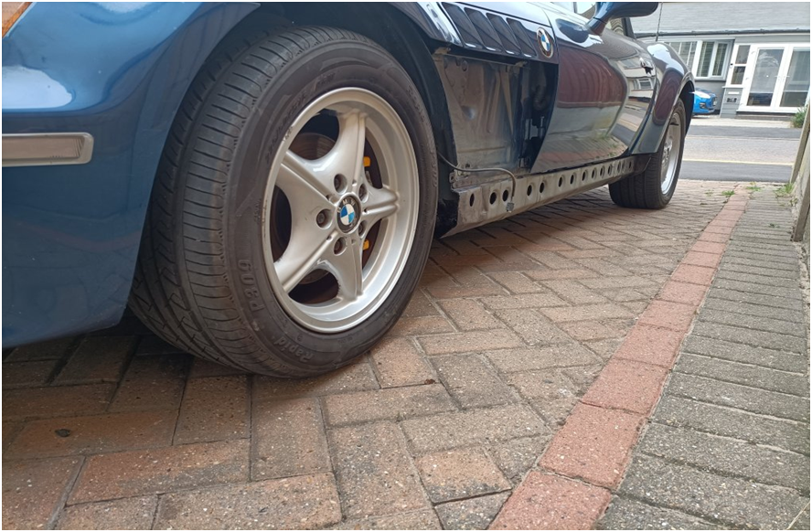I managed to get the outer sills from BMW but they were not cheap and come unpainted here they are all painted and fitted ready to start conversion. During this conversion I have also replaced all of the suspension, brakes and bushes