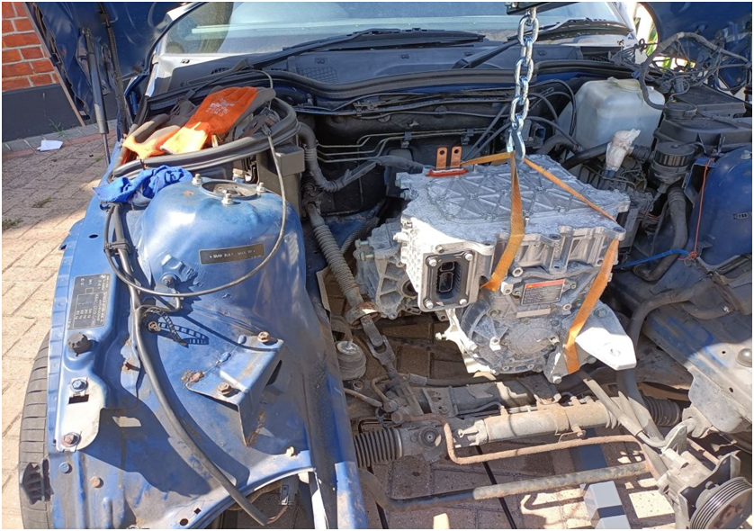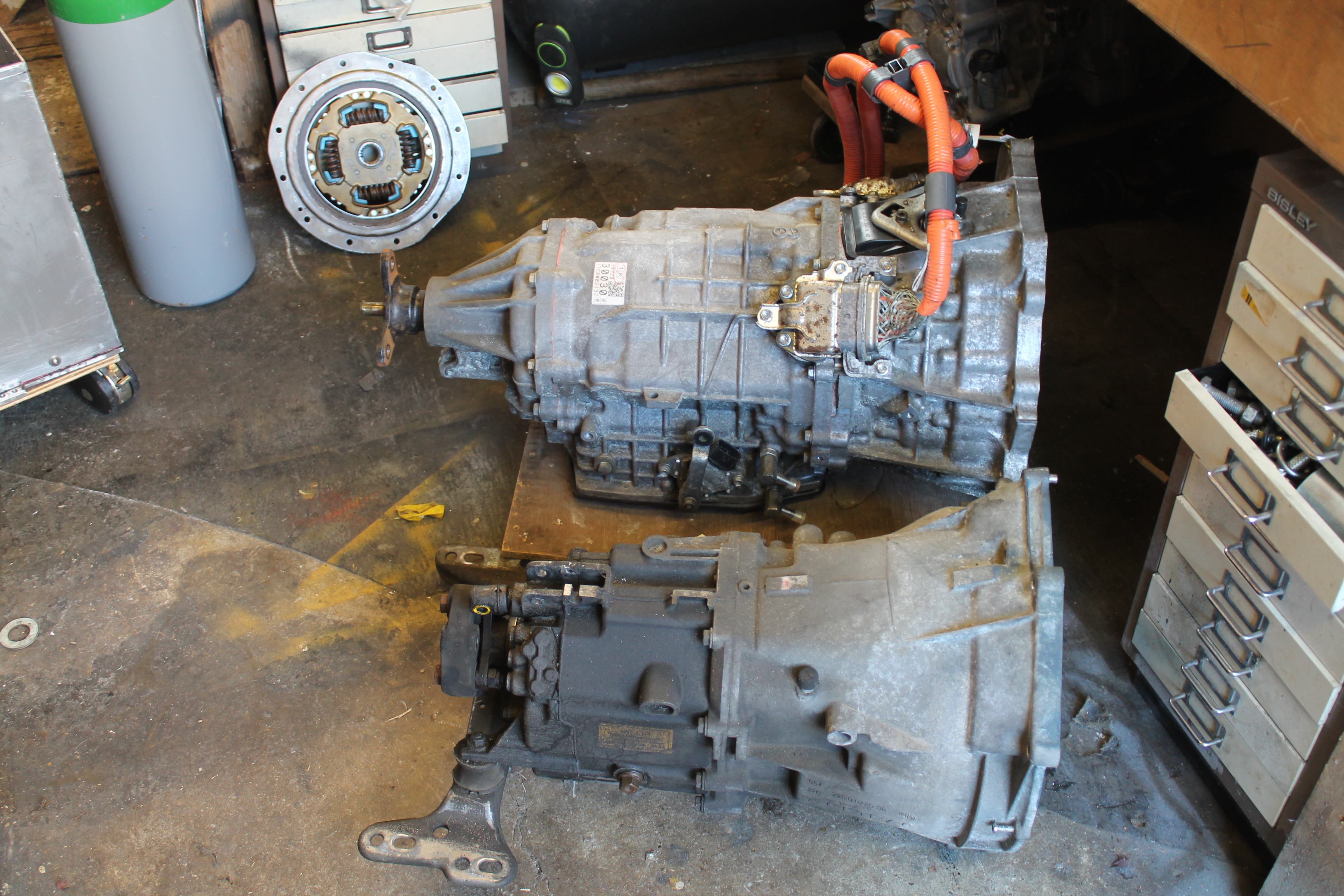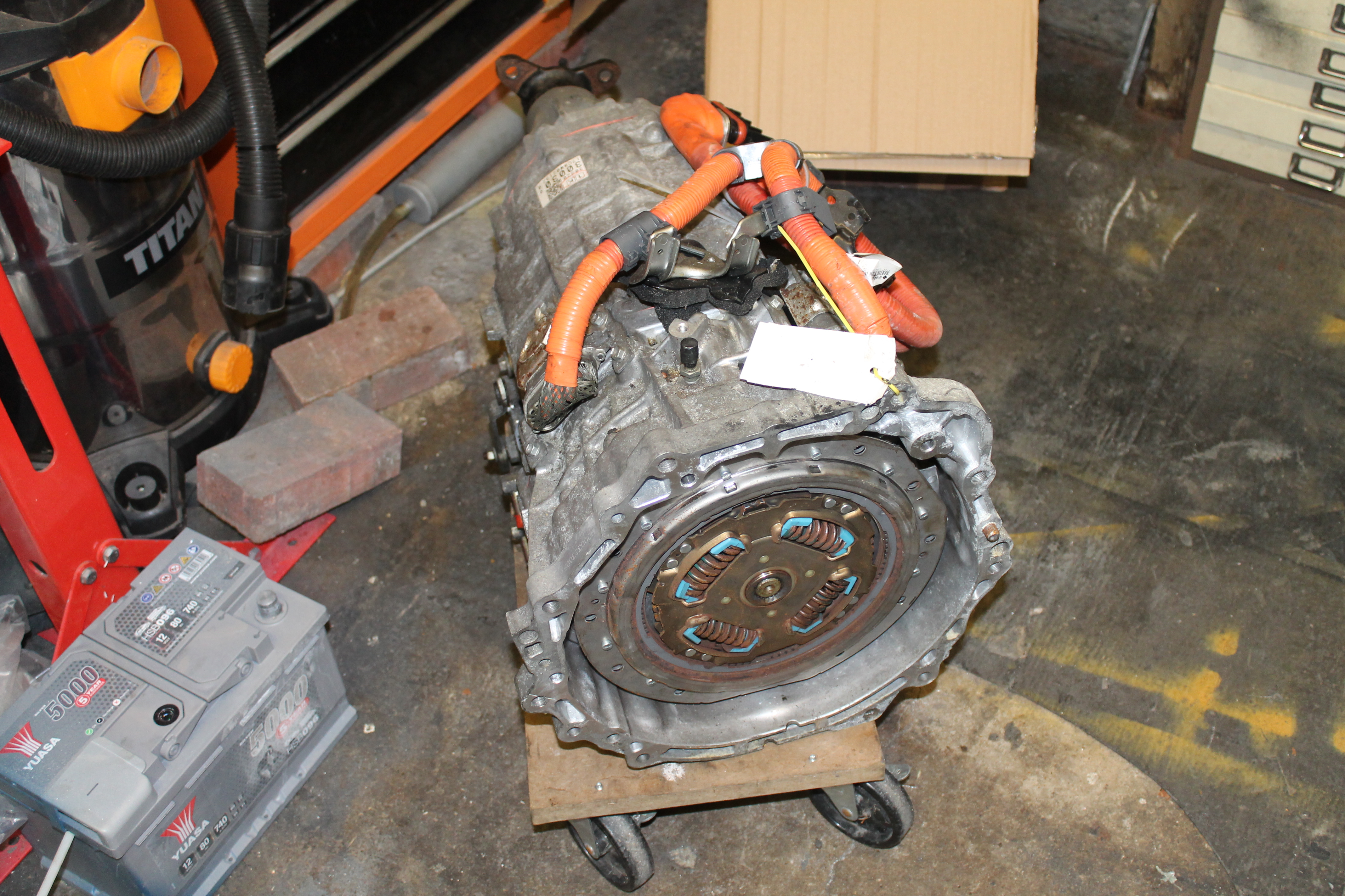Having done 500 electric miles in the car I've never been quite happy with keeping the standard gearbox it has 120 odd thousand miles on it and had no oil in it when I checked it shortly after buying the car, the electric motor tops out at just over 10,000 rpm at which point the gearbox is screaming also I wasn't 100% happy with the coupling that I made I could fix both of these things relativly easily but I like a challenge so I'm replacing it all with a lexus is300h hybrid transmission there is a slight weight reduction about 10kg but the weight will be moved further back towards the center of the car no coupling between motor and gearbox as it's all one unit and more room up front so I can re fit the original 12v battery but in the front, I had to fit a much smaller motorbike battery in the boot after I fitted the rear HV battery pack due to lack of space and the final and most important reason is because I'm just playing and I want to