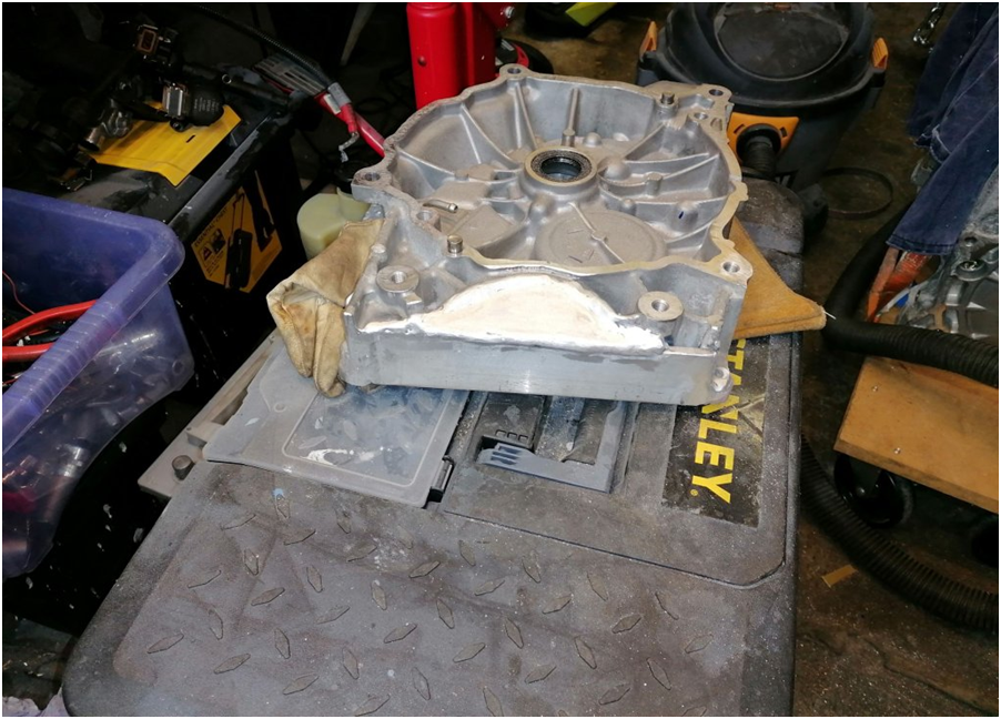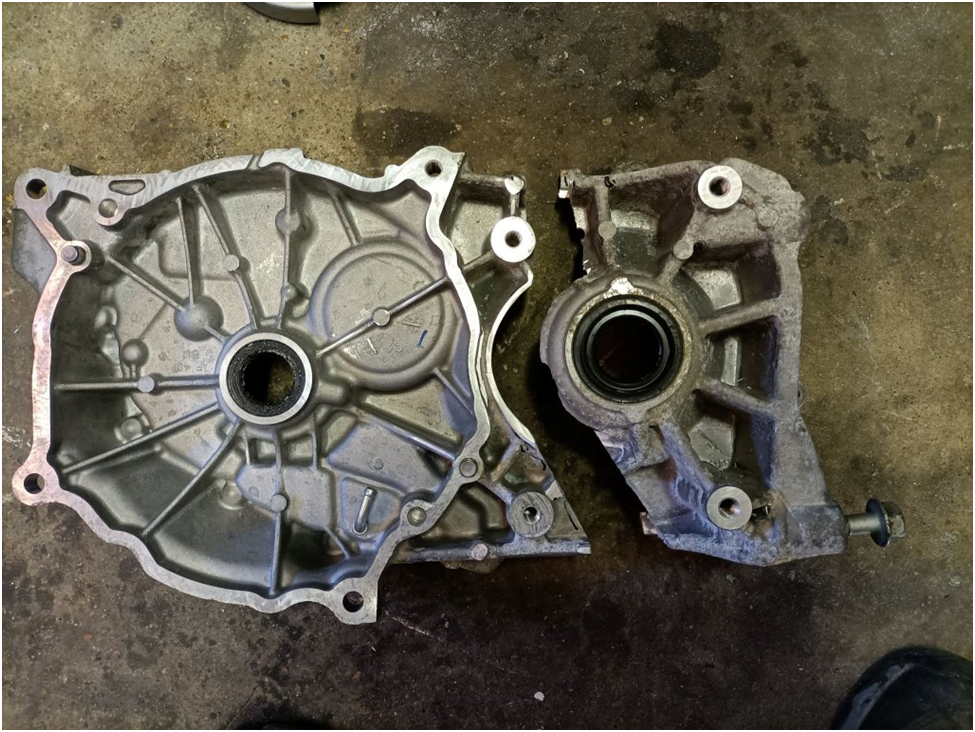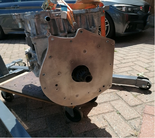 This is the leaf motor/inverter and half of the gearbox casing this worked out really well and meant that I didn’t have to use a really thick adapter plate to mount it to the BMW Getrag gearbox