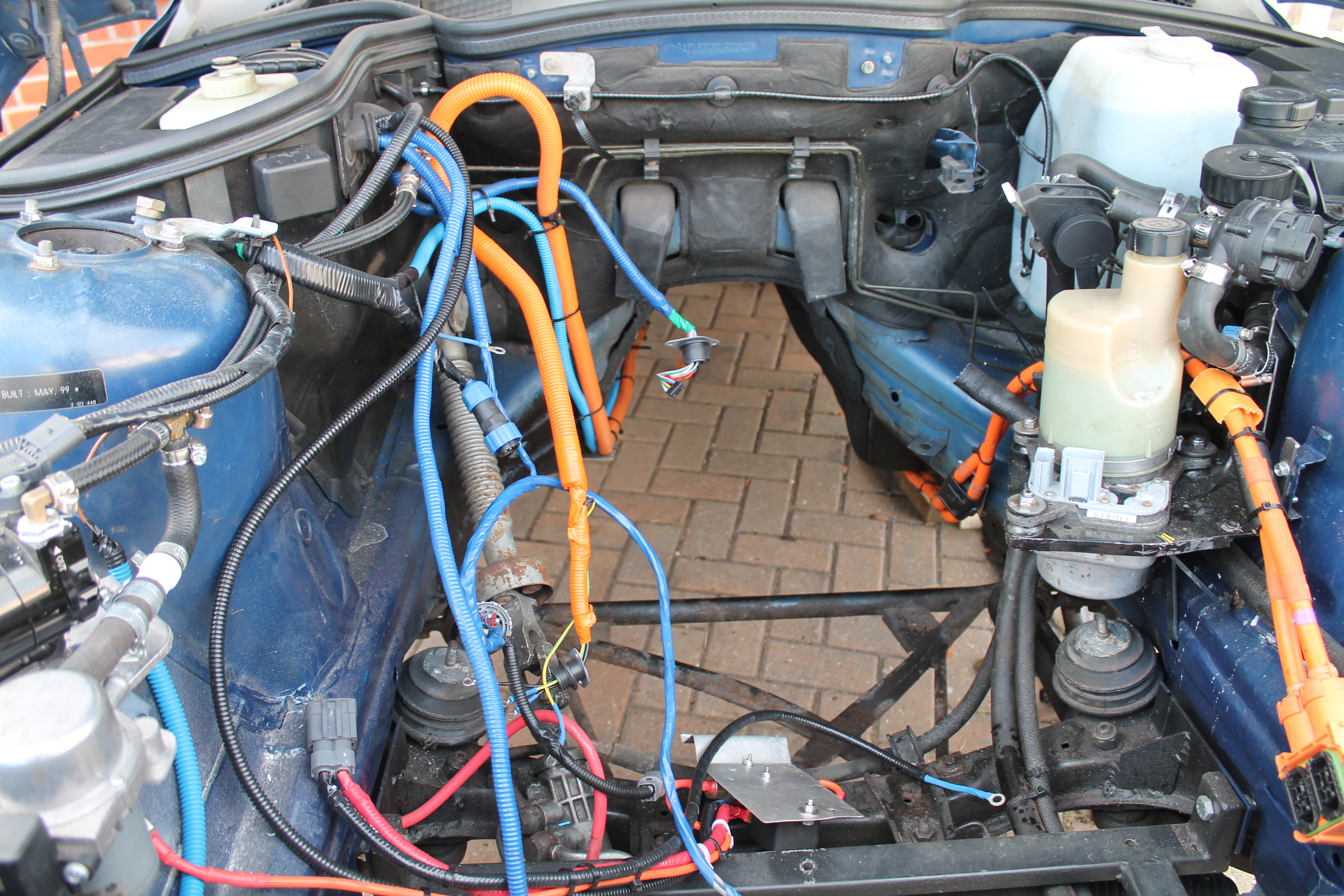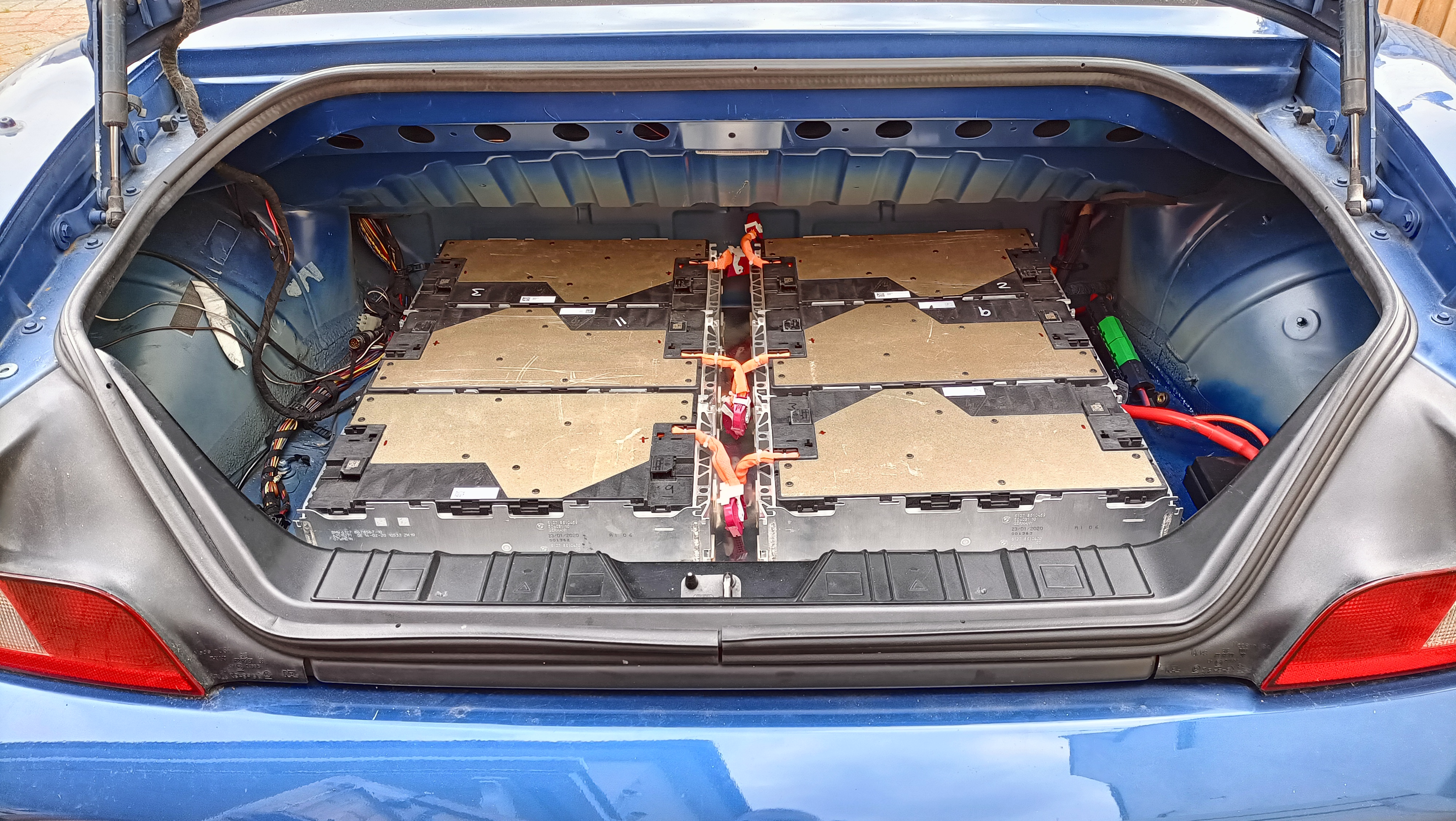 It’s been through some evolution since this picture was taken it now has 2 BMW oem connectors one of which goes to the inverter the other goes to the rear battery pack that and I now have ten BMW 8s modules instead of the six 16s