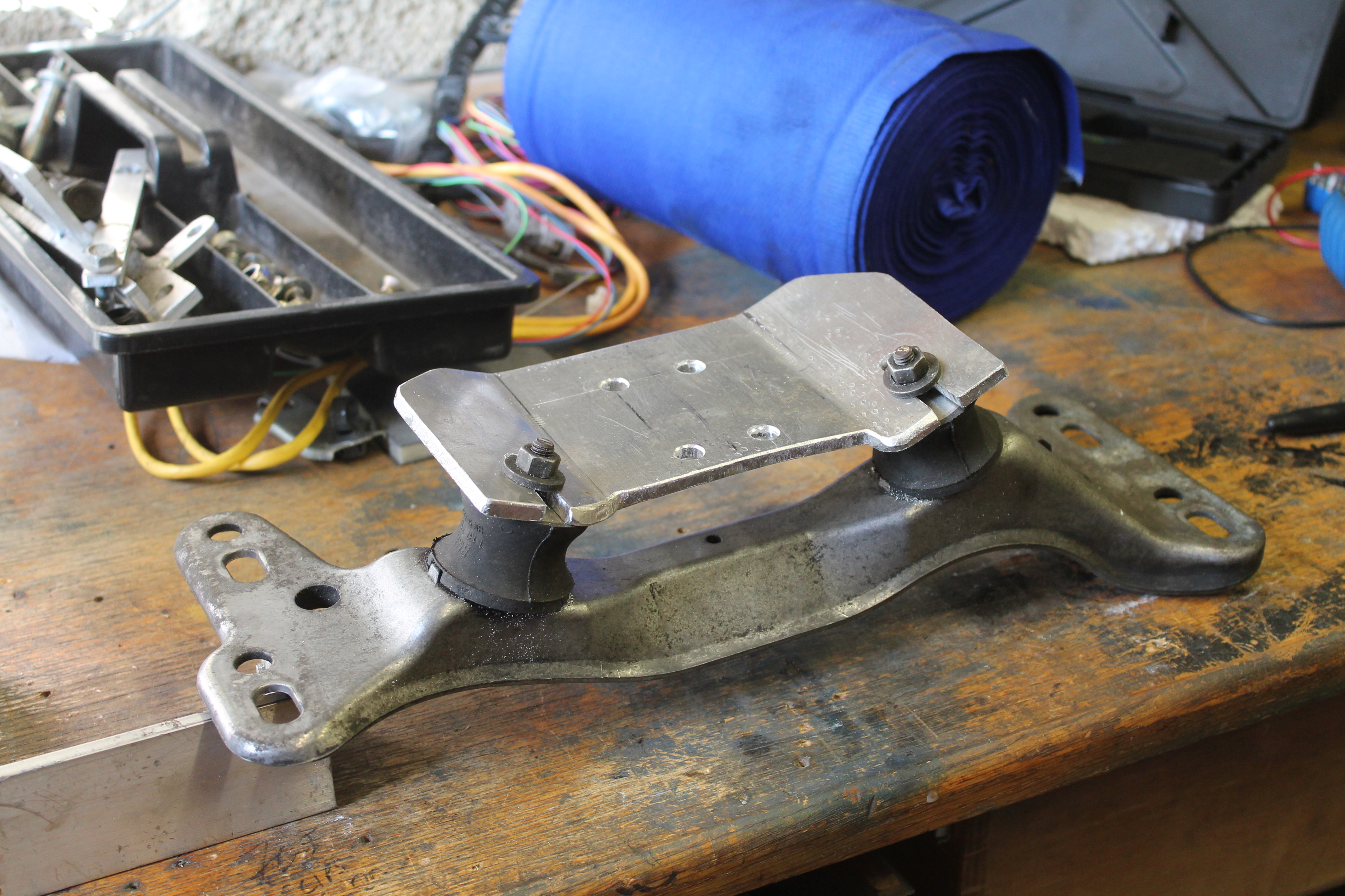 The motor mounts were made from steel box section with reinforcing tube welded in where the mounting bolts go through