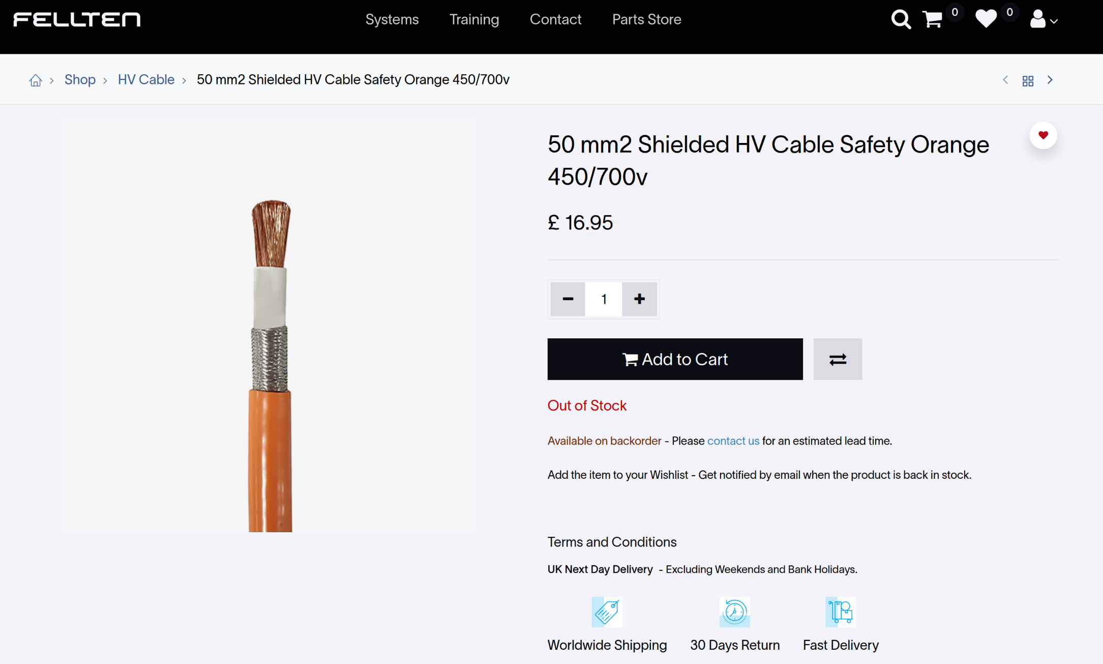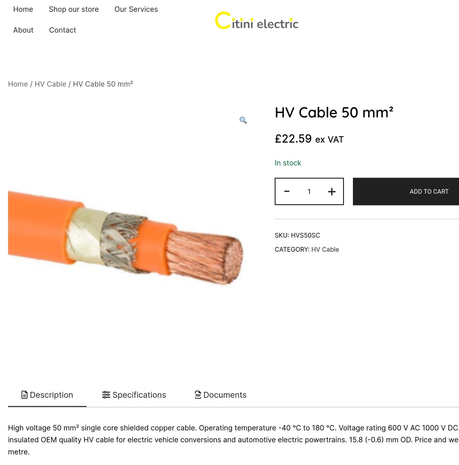 asavage wrote: Sat Jul 15, 2023 4:54 am I'm in the US, and I'm having trouble finding a supplier for 50mm2 shielded cable in orange with a 600v rating.