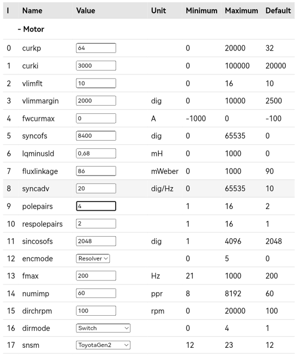 Pete9008 wrote: Thu Feb 02, 2023 4:42 pm If your values for lqminusld and flux linkage are right for your motor then I think you need to change fwcurmax to something like -40A.