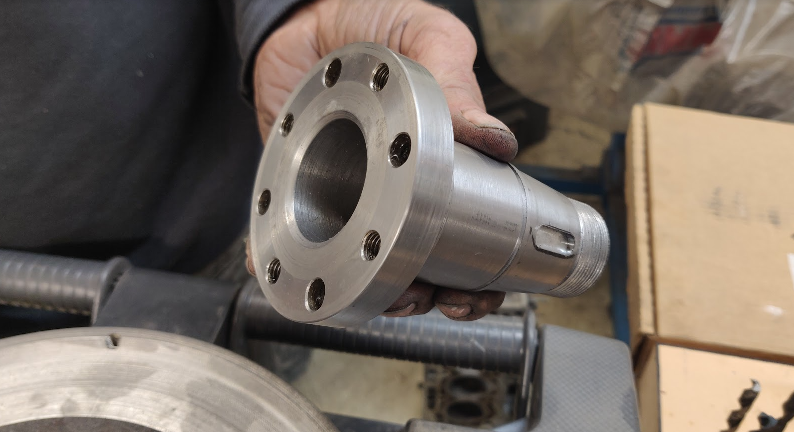 This is why the spline adapter fitment to the bearing axle was made in such a way that in order to attach, prior to the assembly, the spline adapter was kept several hours in the freezer and the bearing axle was heated up in an oven. The actual assembly was done in a hydraulic press.
