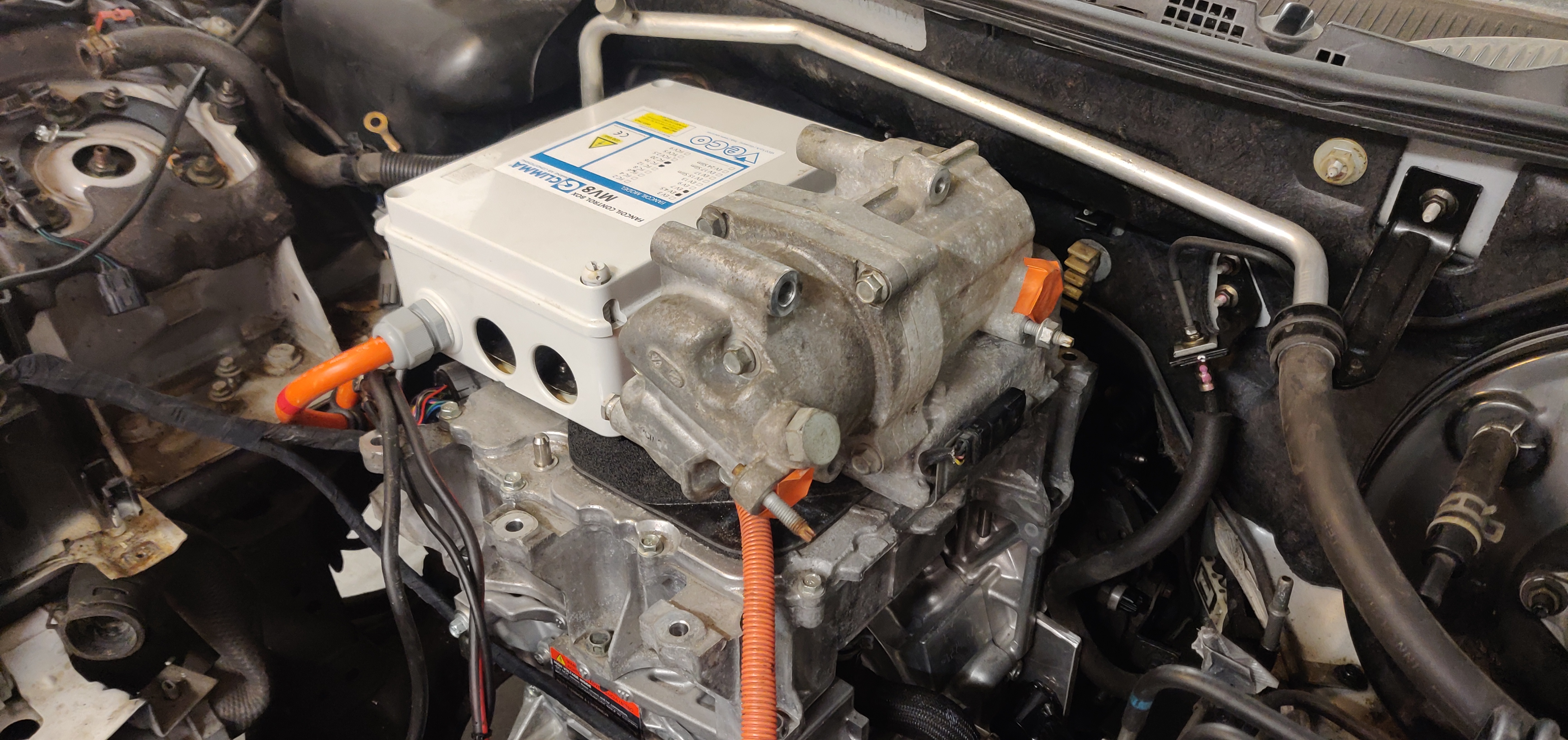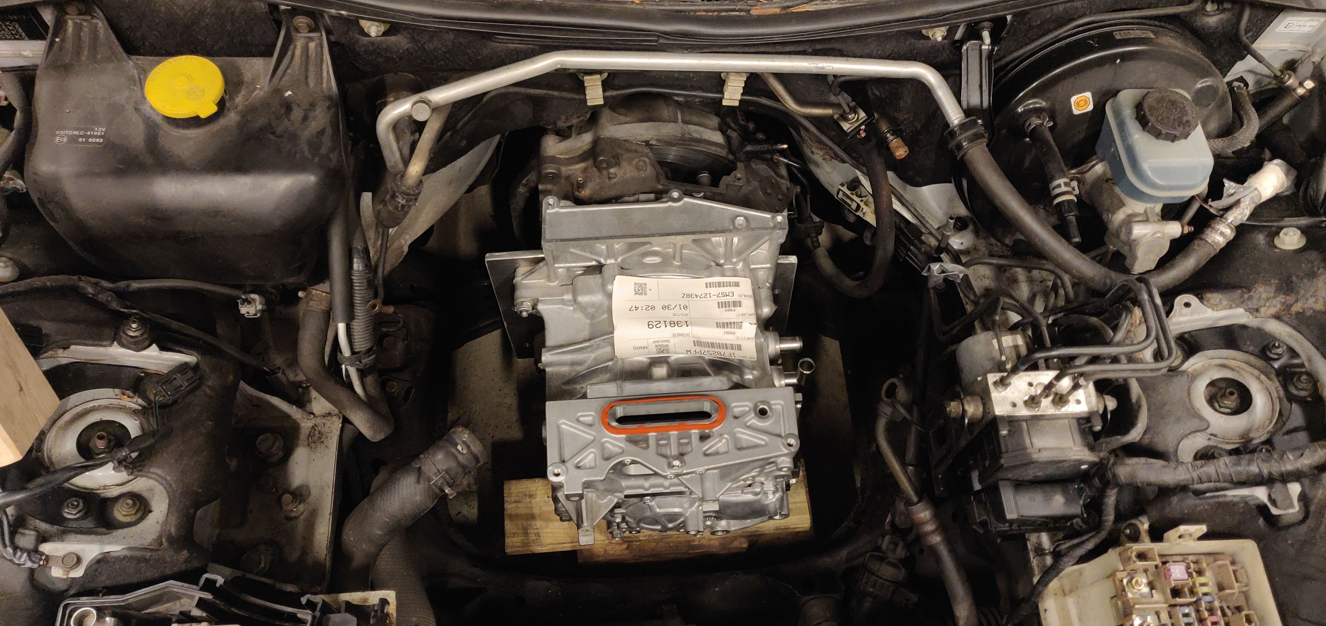 I assume it does not come as huge surprise to anybody that the PDM does not fit on top of the Leaf stack as the Nissan engineers originally planned it. The unit is very bulky, but I managed to find a place for it under the hood without sacrificing the original radiator and AC condenser assembly.
