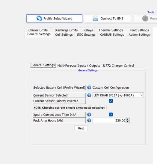 Hi Tom. In General Settings, for the "Selected Battery Cell (Profile Wizard), I have "Custom Cell Configuration".