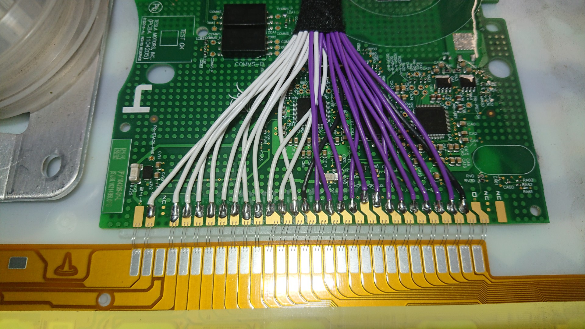 After soldering the tap wires, the individual cell voltages were checked (before and after) and showed no sign of shorts or issue, so looked like all was good. Don't think the Tesla BMB board on the module does anything in this isolated state so I'll need to go back and recheck the 24-way plug and unwrap the wires to see if anything shows up there now that some time has passed.