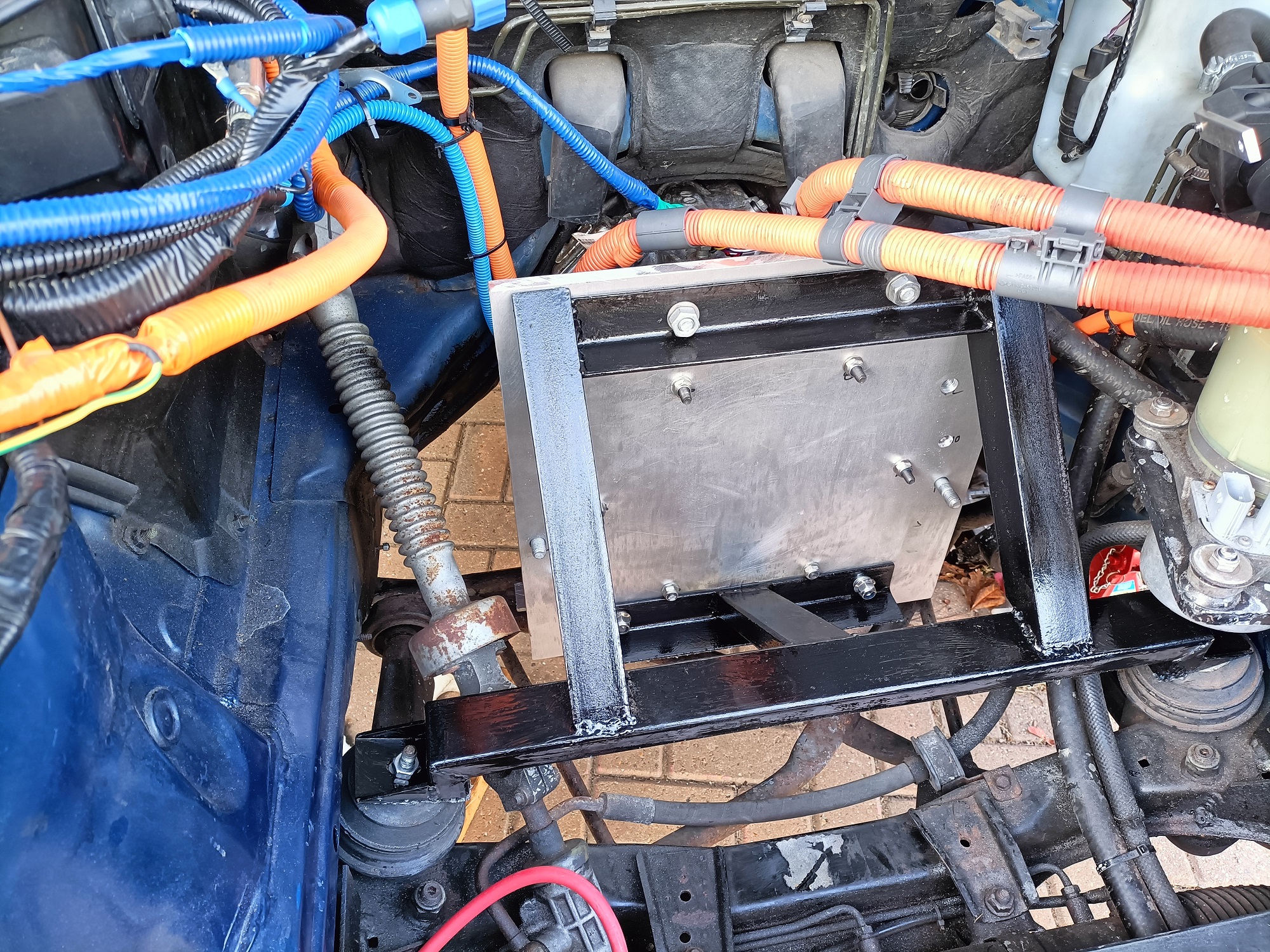 I seem to have spent this week going around in circles, I thought the layout all planned but for various reasons it didn't work out so had to rebuild the transmission mount to accomodate the dc to dc/charger and inverter and also relocate the transmission oil cooler but it's all done now