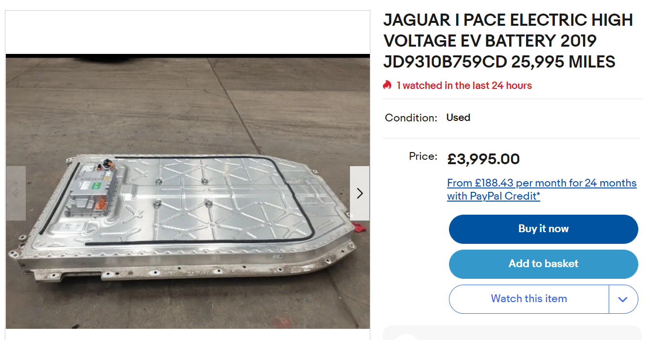 I notice an I-pace battery pack on ebay - 90kWh for less than £4000! very cheap per kWh!