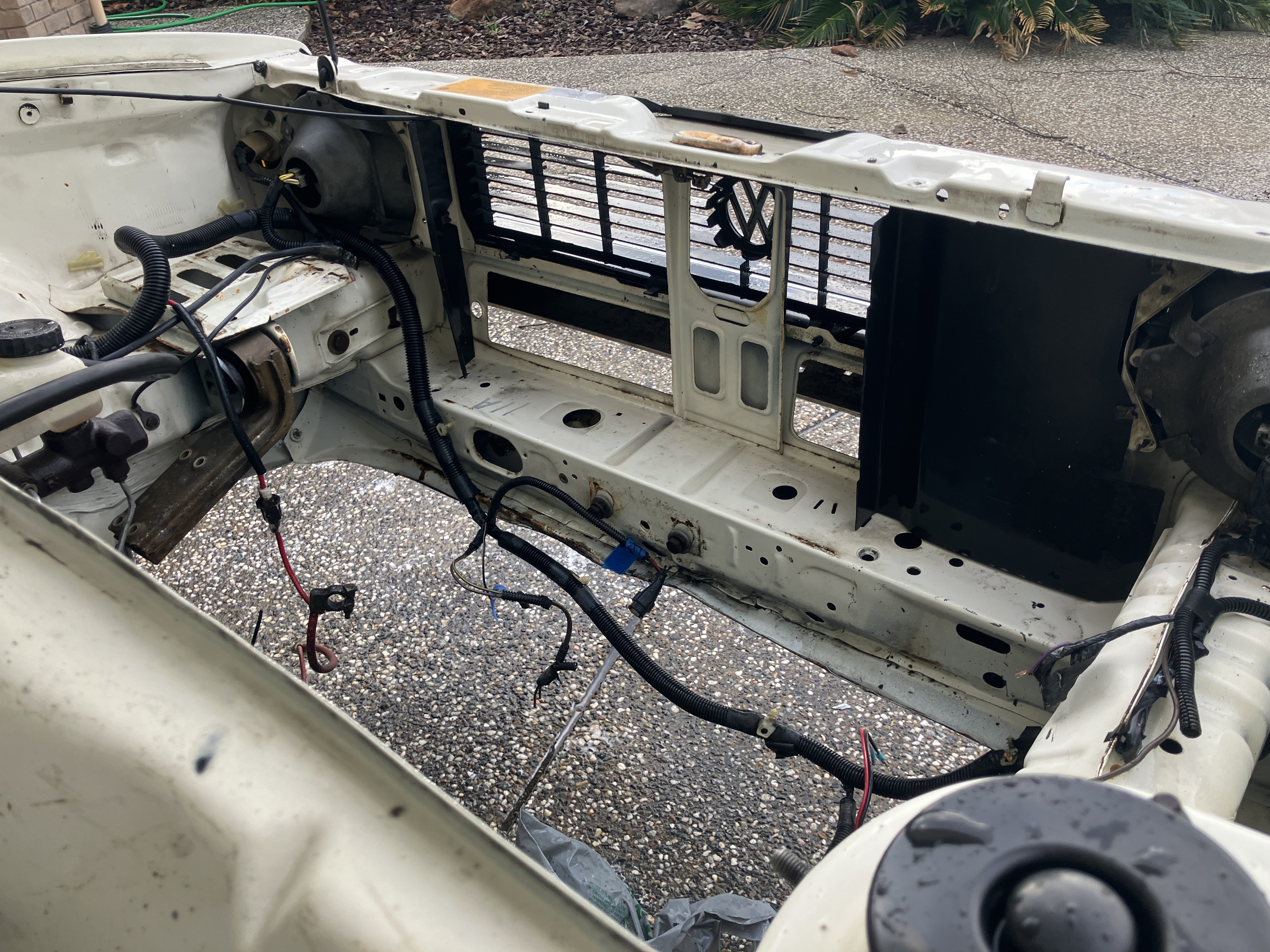 the stock radiator had to come out to make it easier to drop the engine later