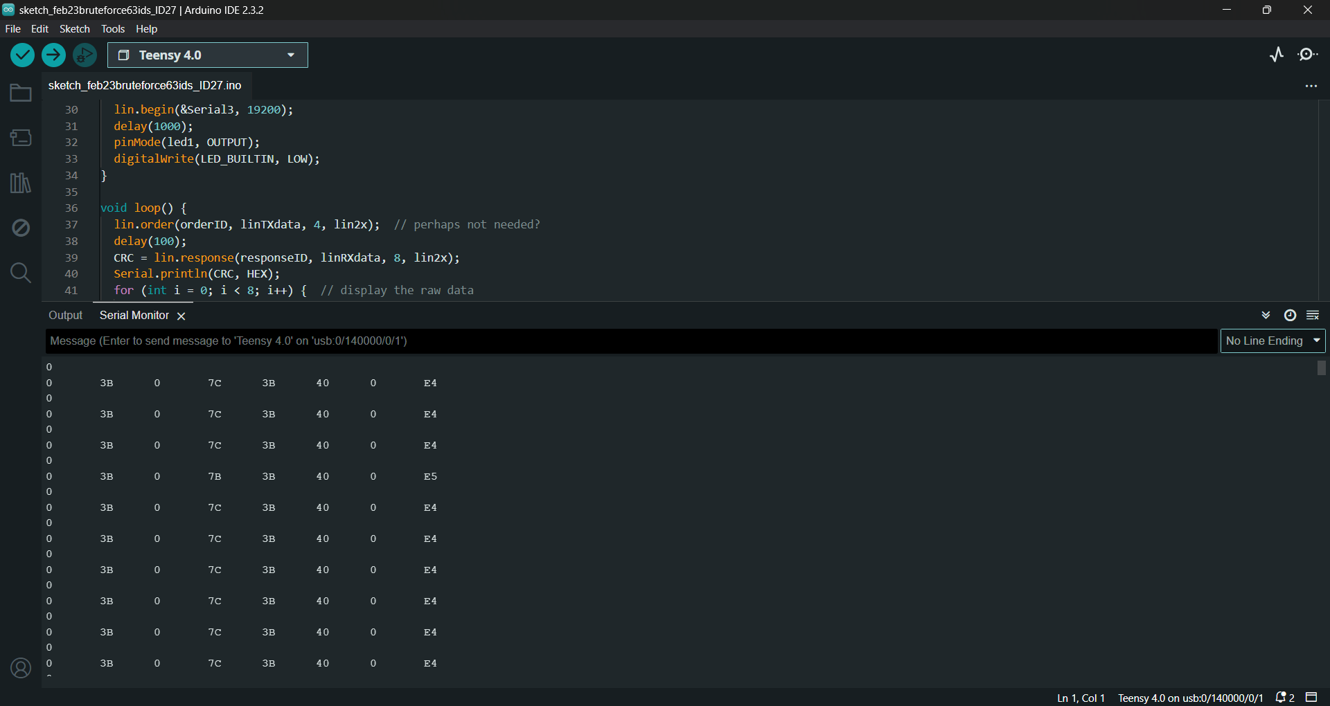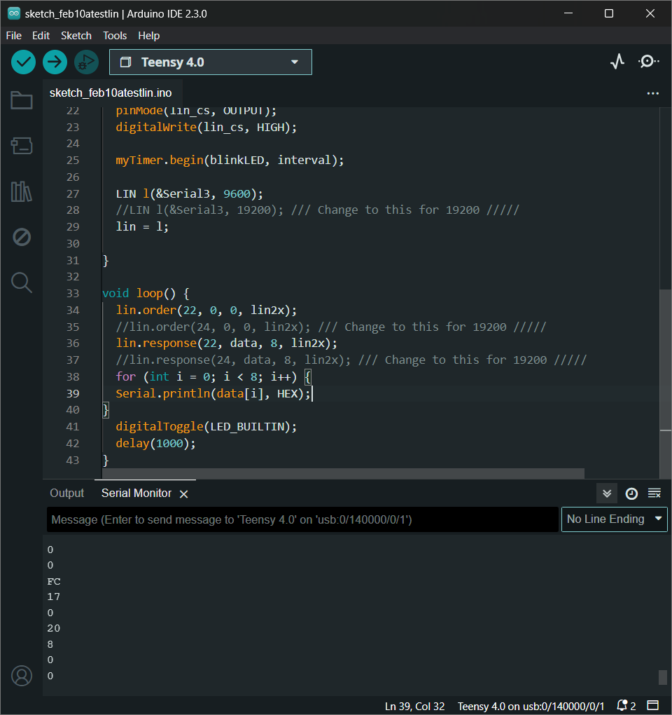 Serial.println(lin.response(22, data, 8, lin2x), HEX);