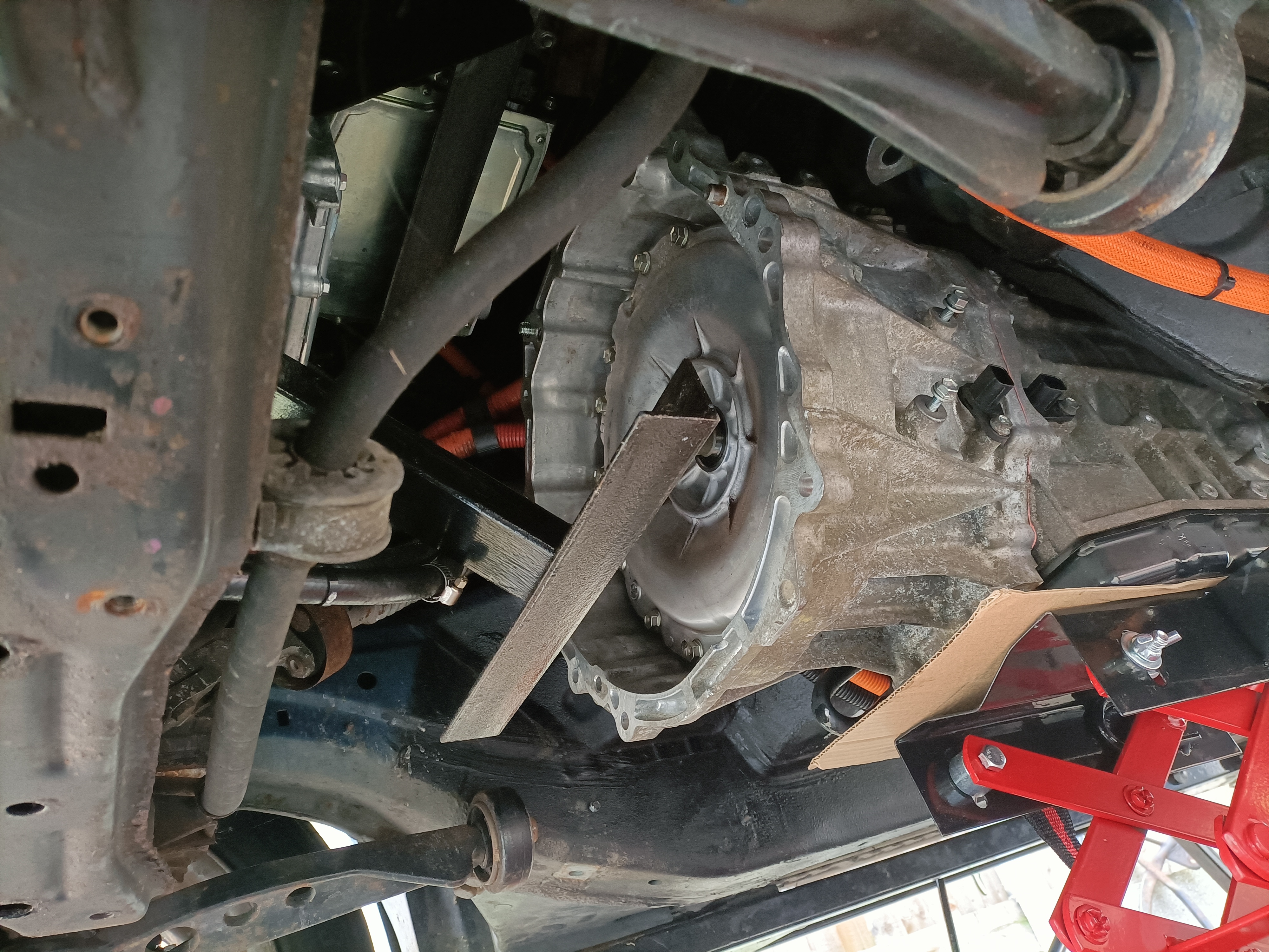 I managed to get the front mounting plate and coupling disc out without even dropping the Transmission just unbolted it, dropped the propshaft and rolled it back far enough to get it out it felt completely stable.