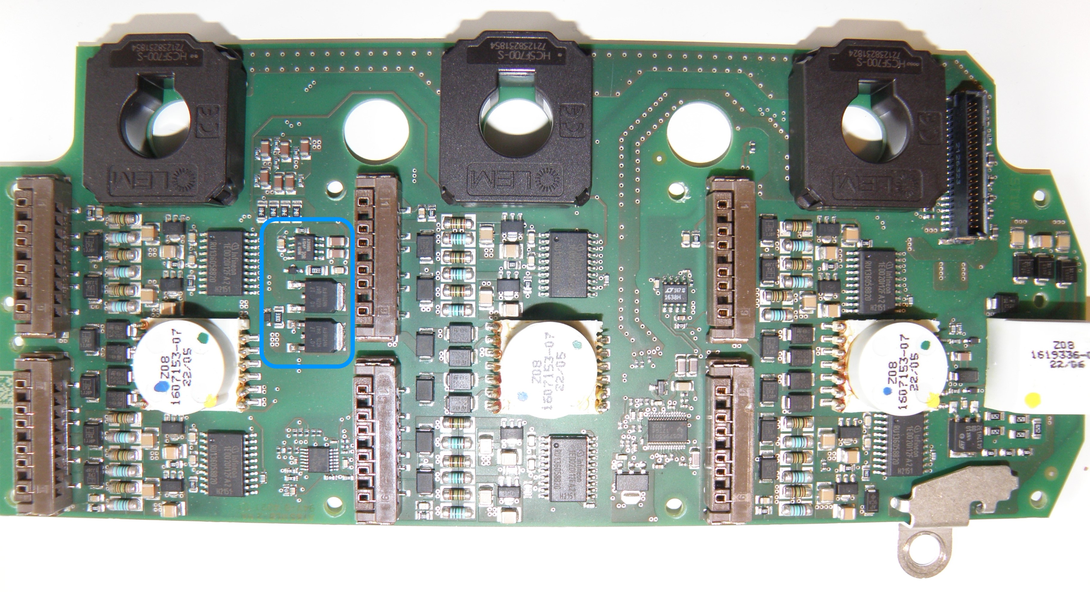It is located on the underside of the gate driver board, tip of the blue arrow below: