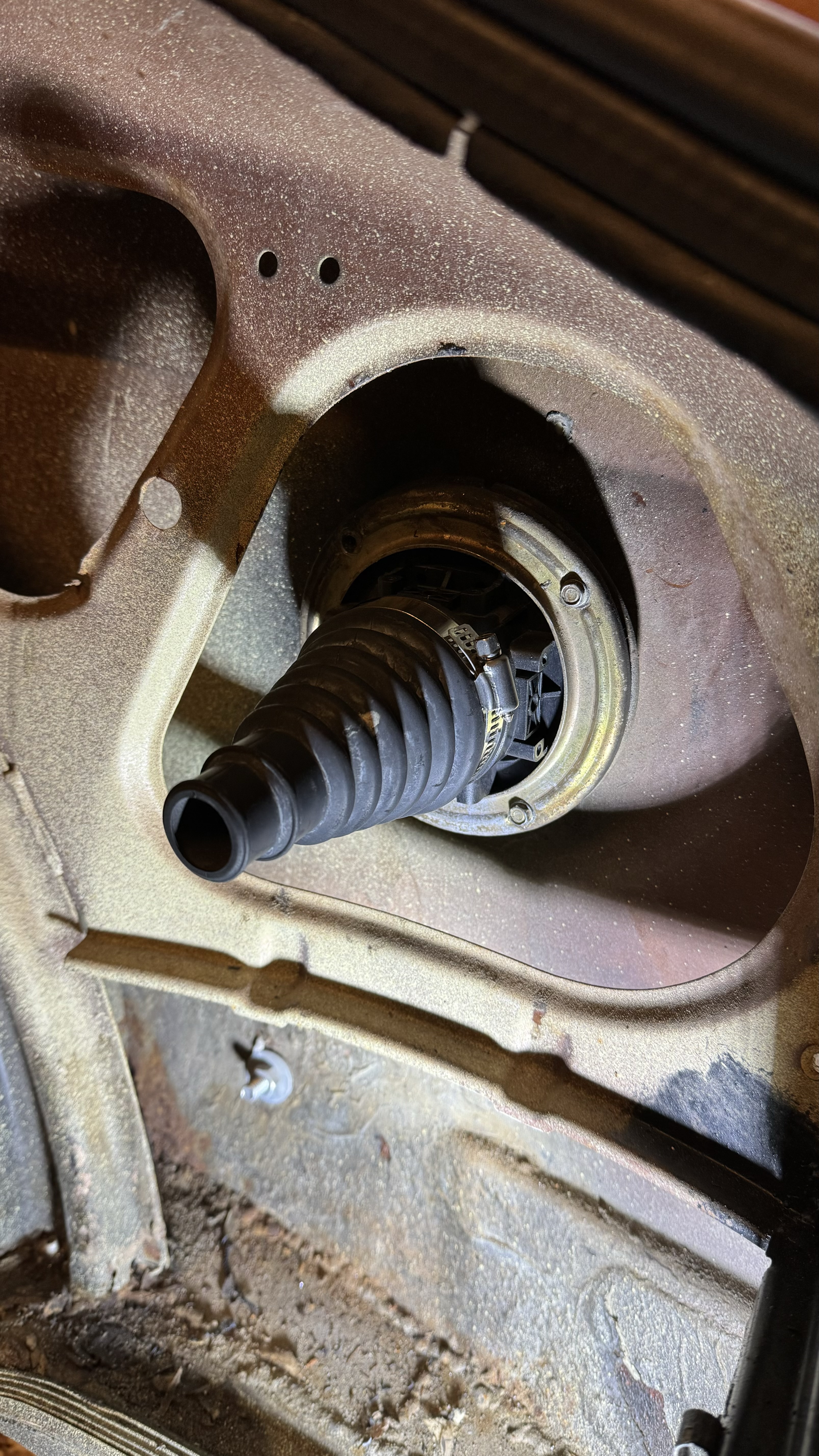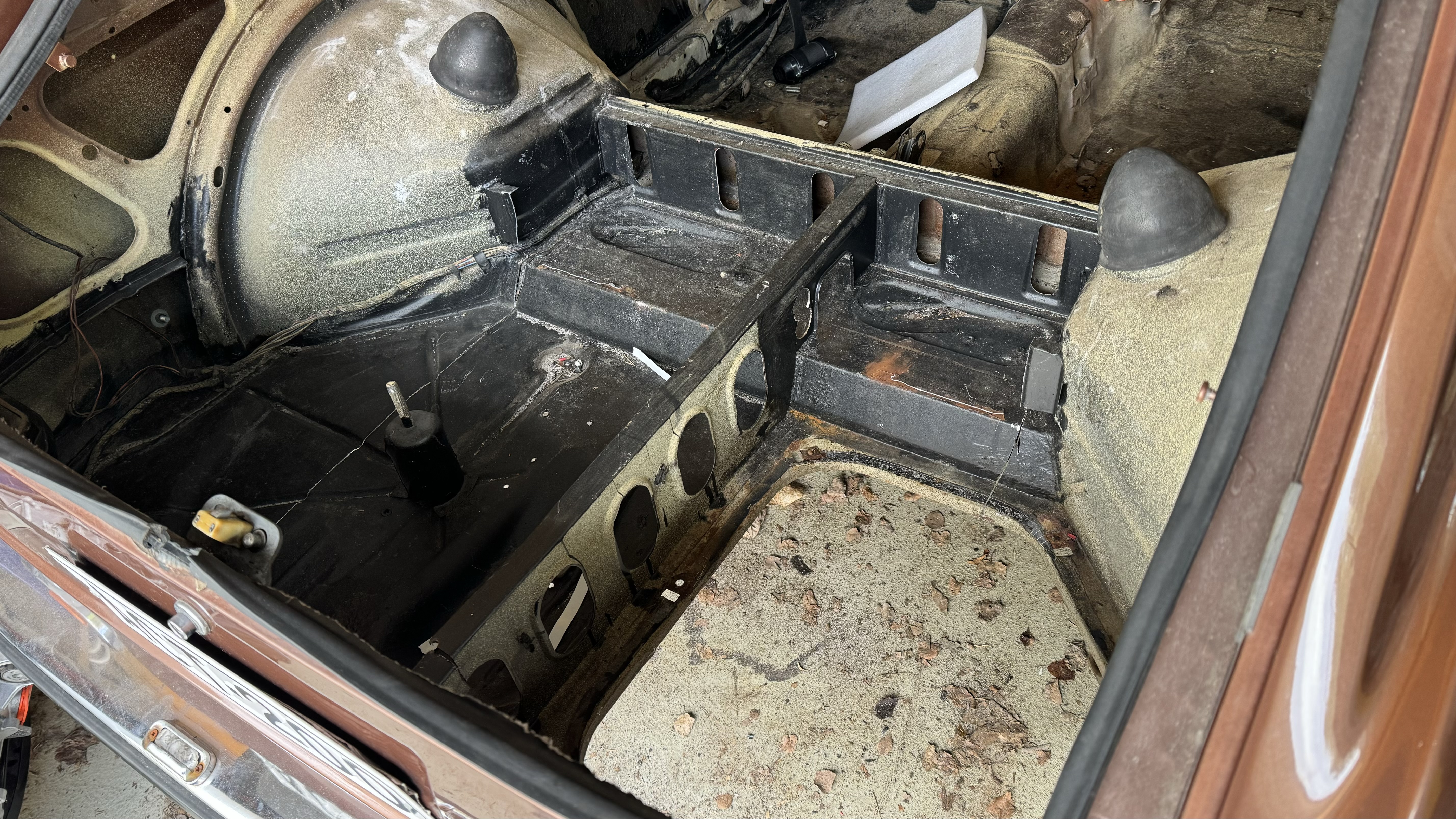 Cutting the trunk and subframe for making space for the motor. Next up, buy some metal profile for strengthening the rear and create mounts for the SDU.