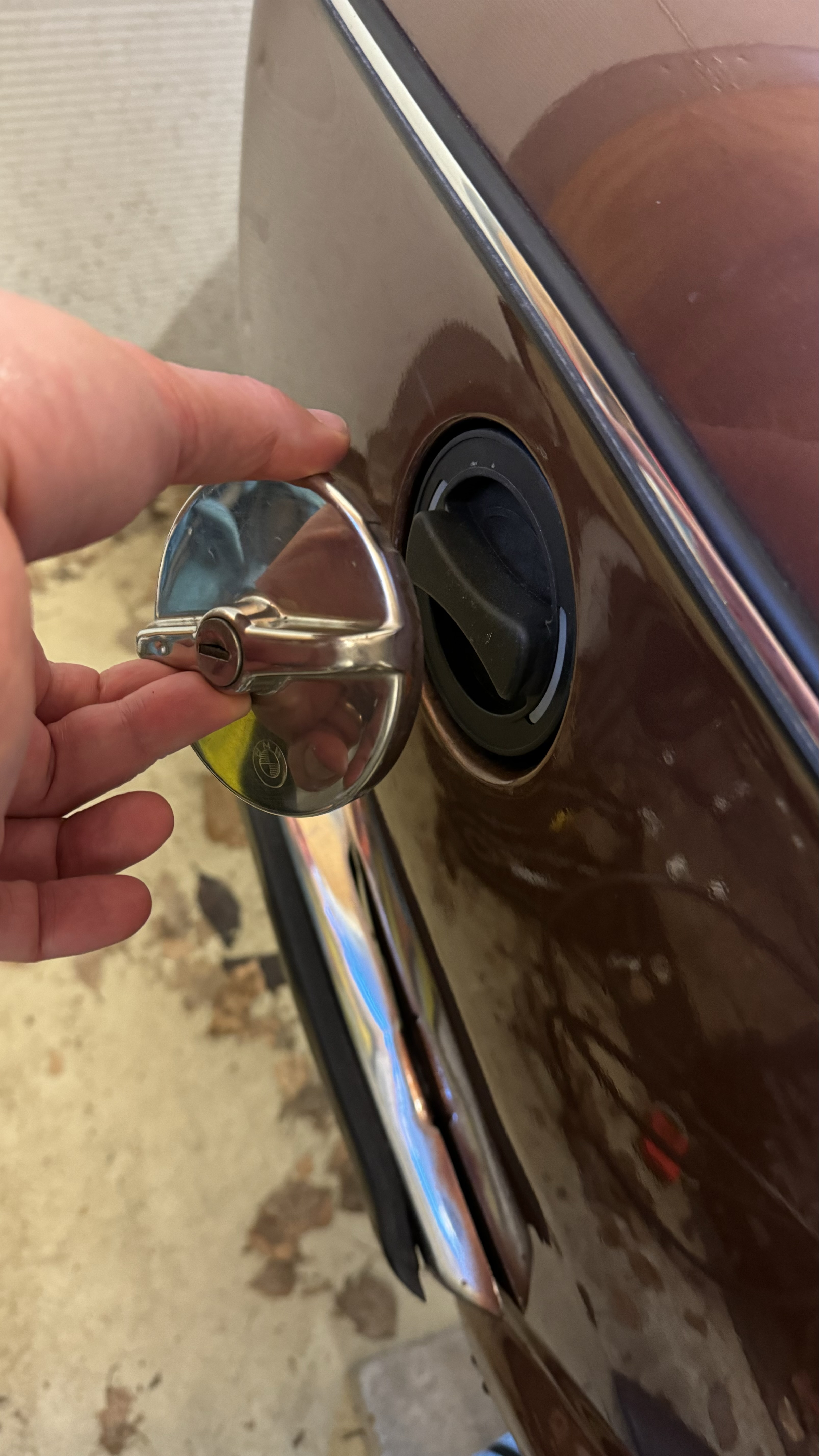 Type 2 charge port installed. Really nice fit. Need to invent something for attaching the original chrome cap to that plastic one.