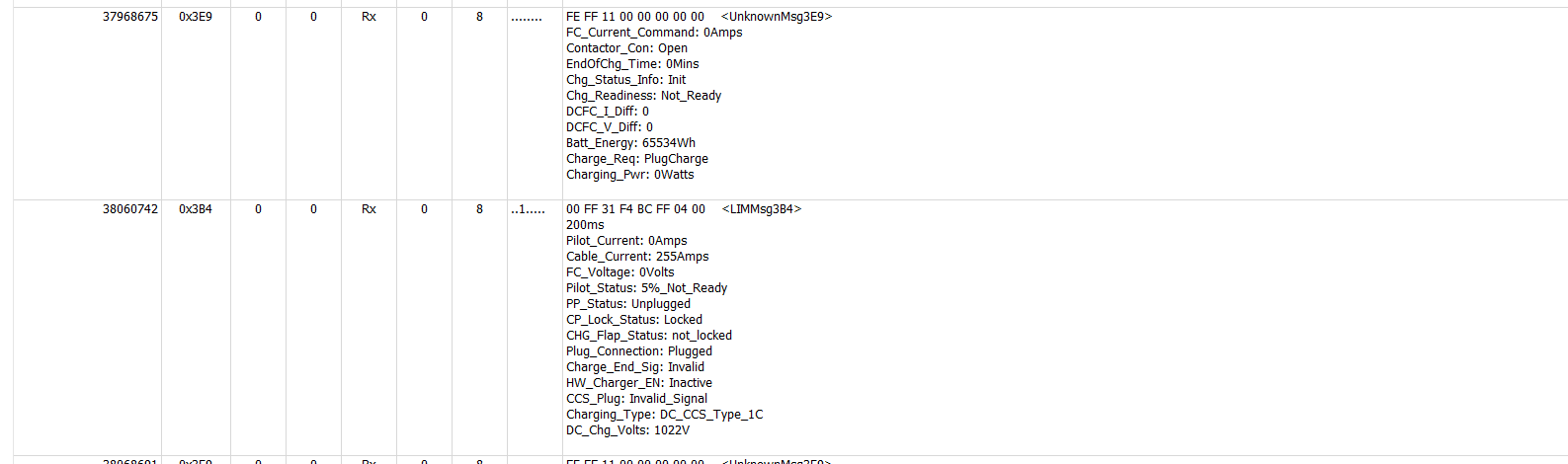 LIM however reads the wall charger info, pilot, gives a-ok to charge, which I use it to kick BMS to wake AC charger via CAN and the charger wakes up. Though I don't have HV connected to the charger yet, but the charger starts sending back healthy status messages and detects AC on input. Wall charger says the car is charging.
