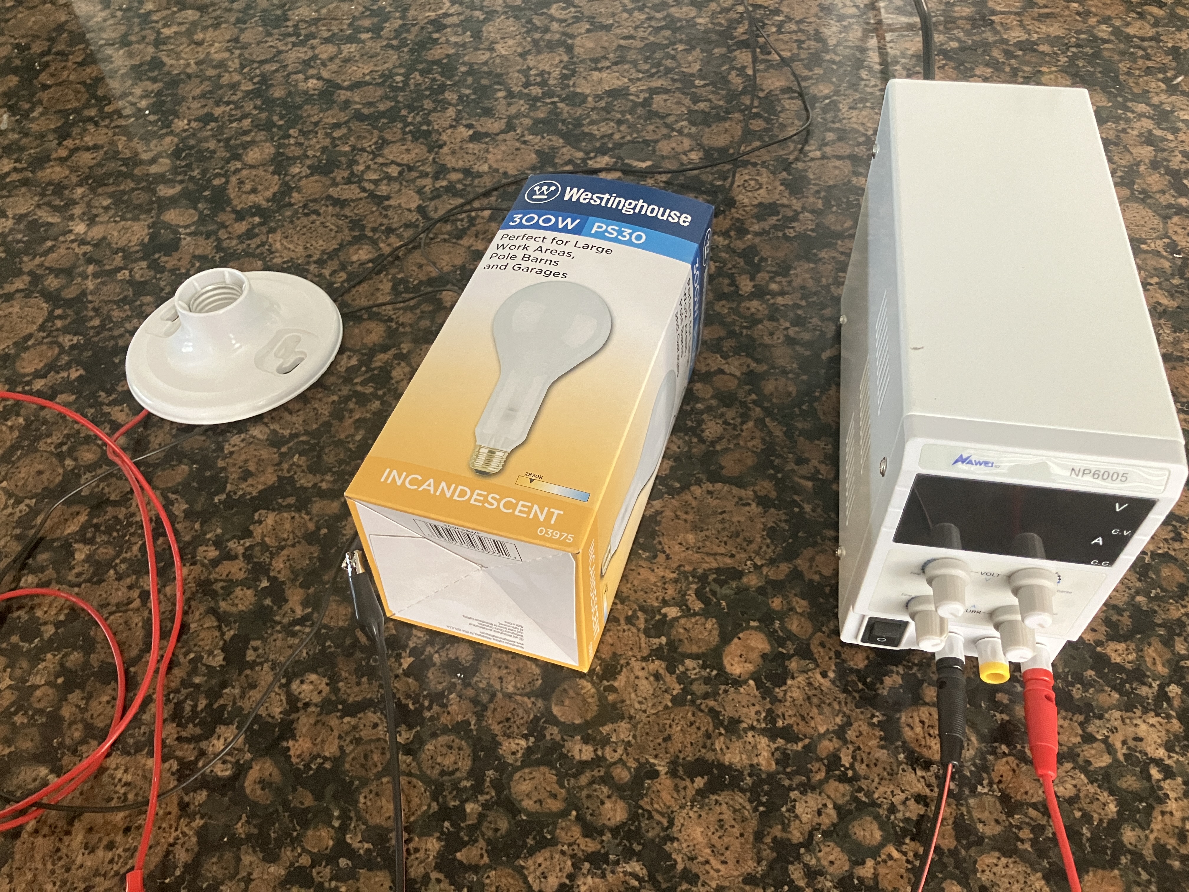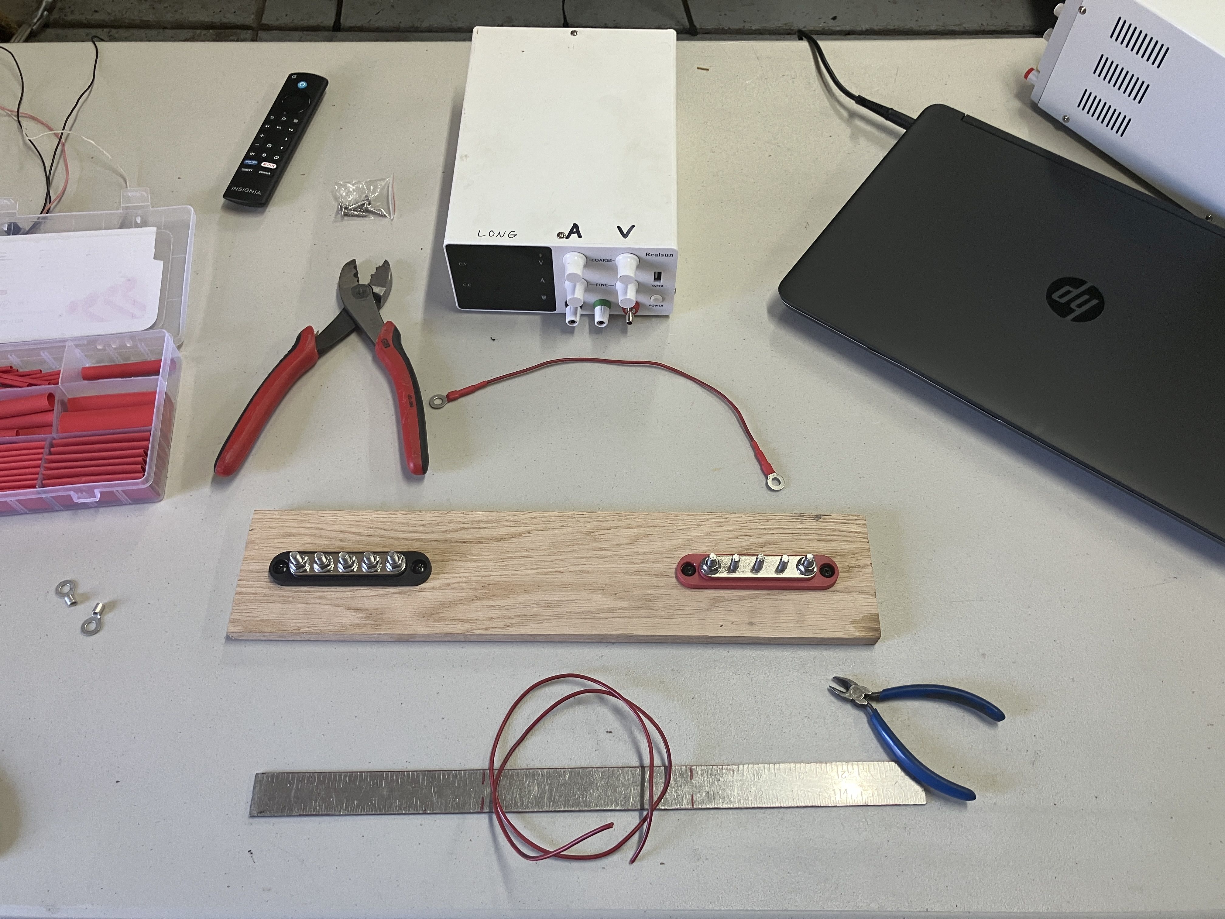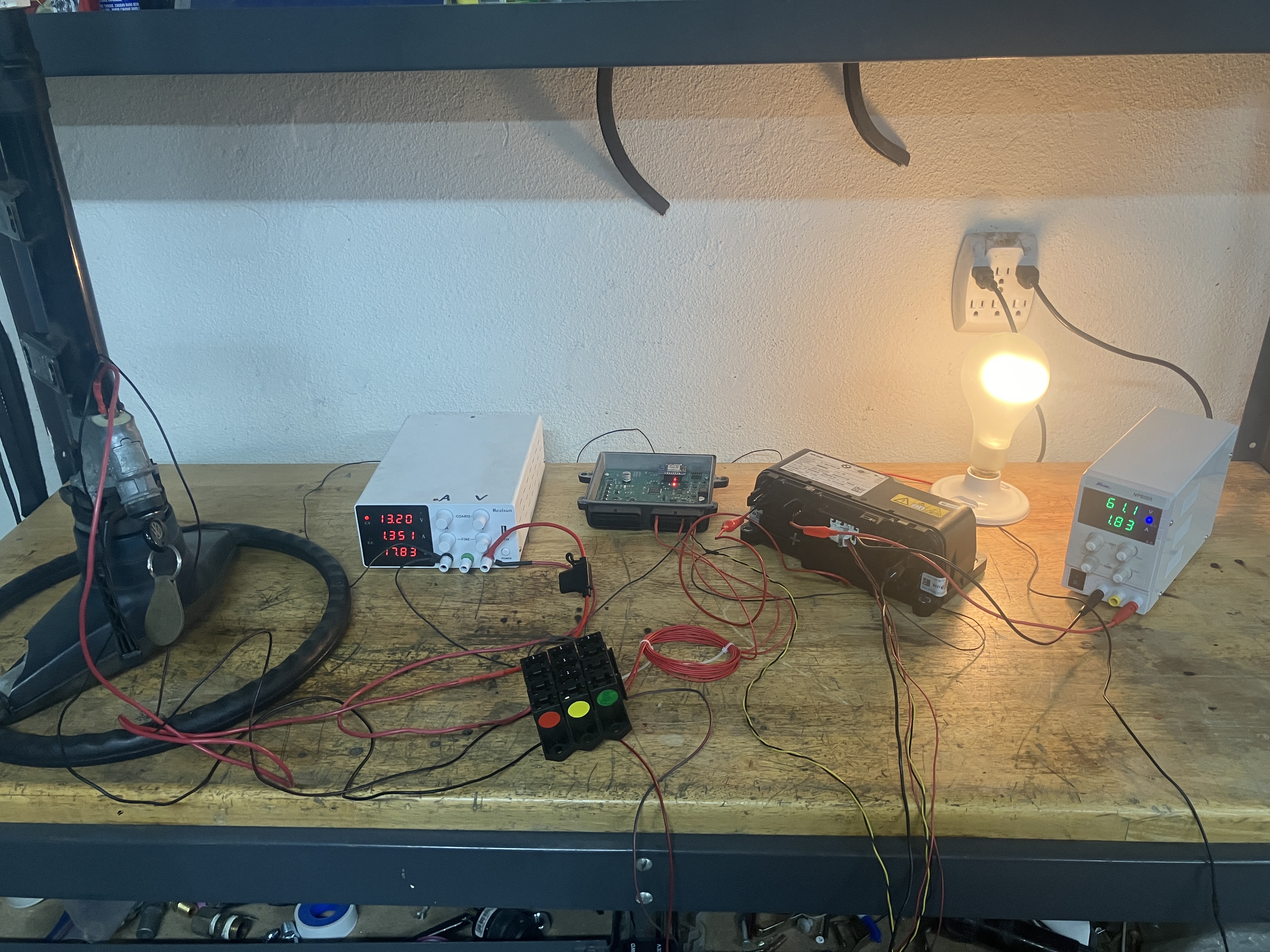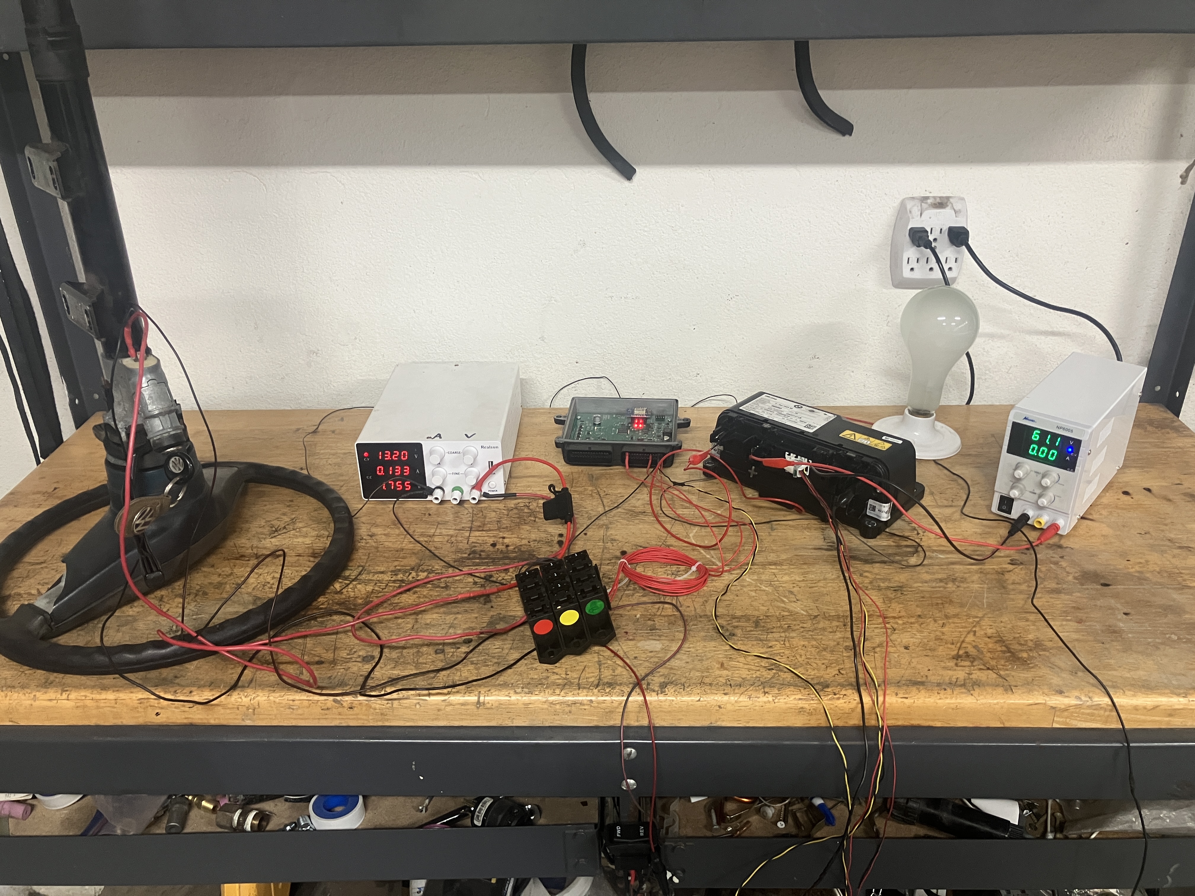 below the bench power supply on the right is simulating the High Voltage battery pack