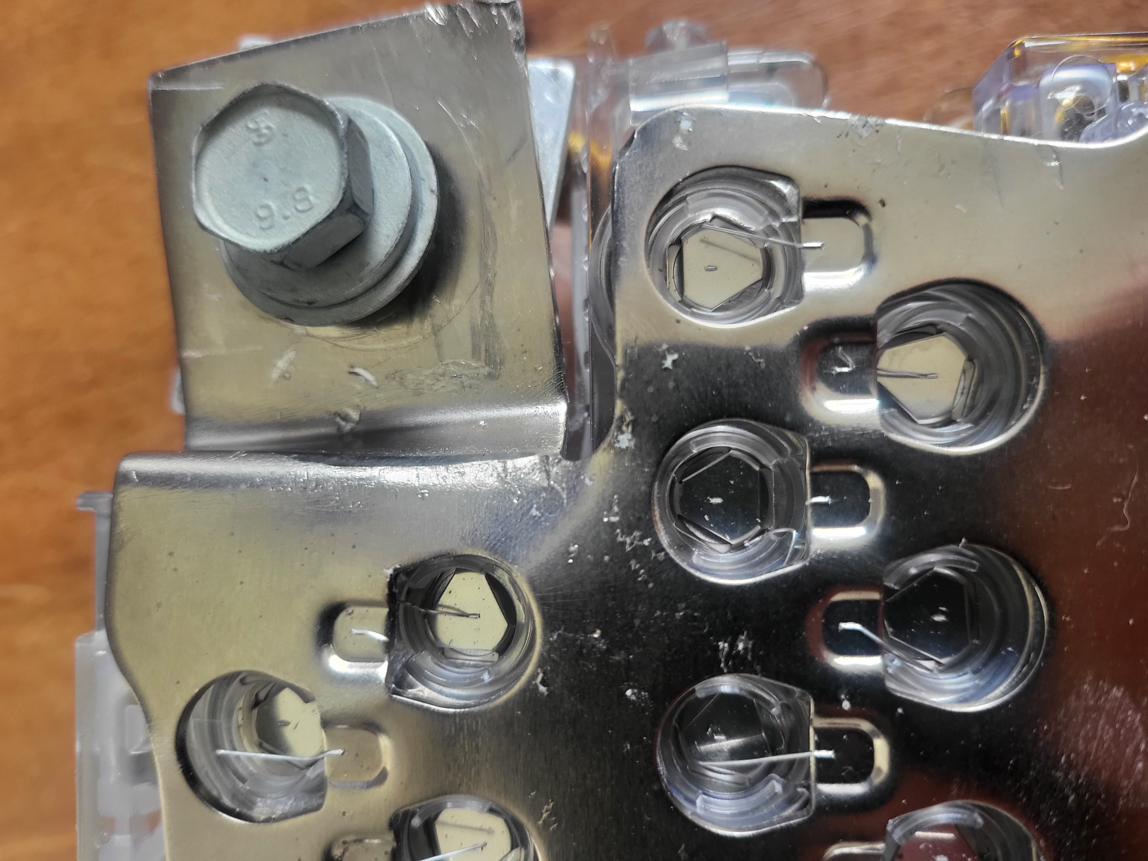 One battery module is perfect, the other I accidentally bent one corner of the conductor plate when pulling it out from under a pile of them, which then snapped about a dozen of the tiny fuse wires. All 444 cells are fine, but the cells with the broken fuse wires do not have contact with the conductor plate any more, so as is, the battery has its capacity reduced by about 20%. This pack was not charged or discharged since I did the damage