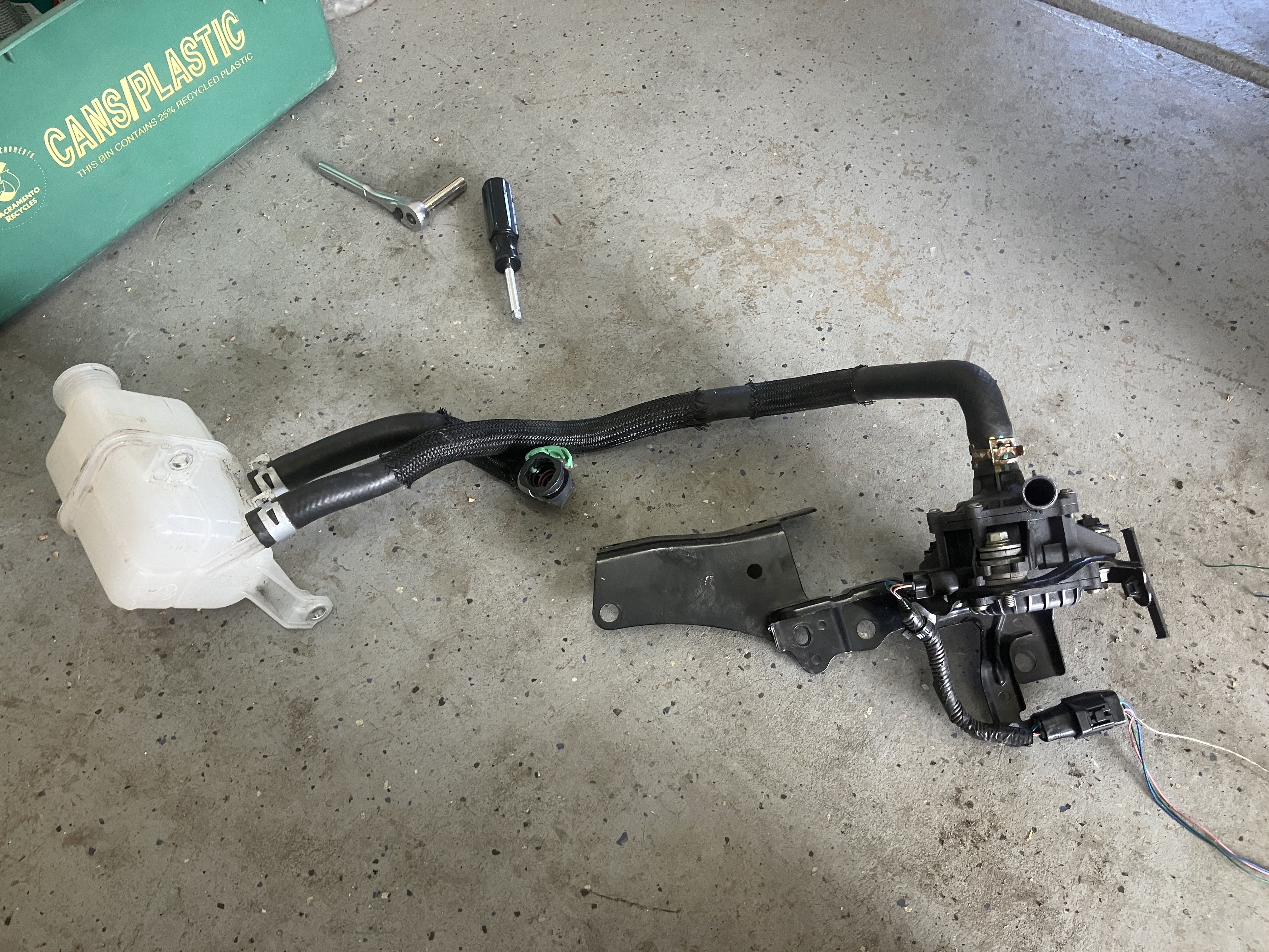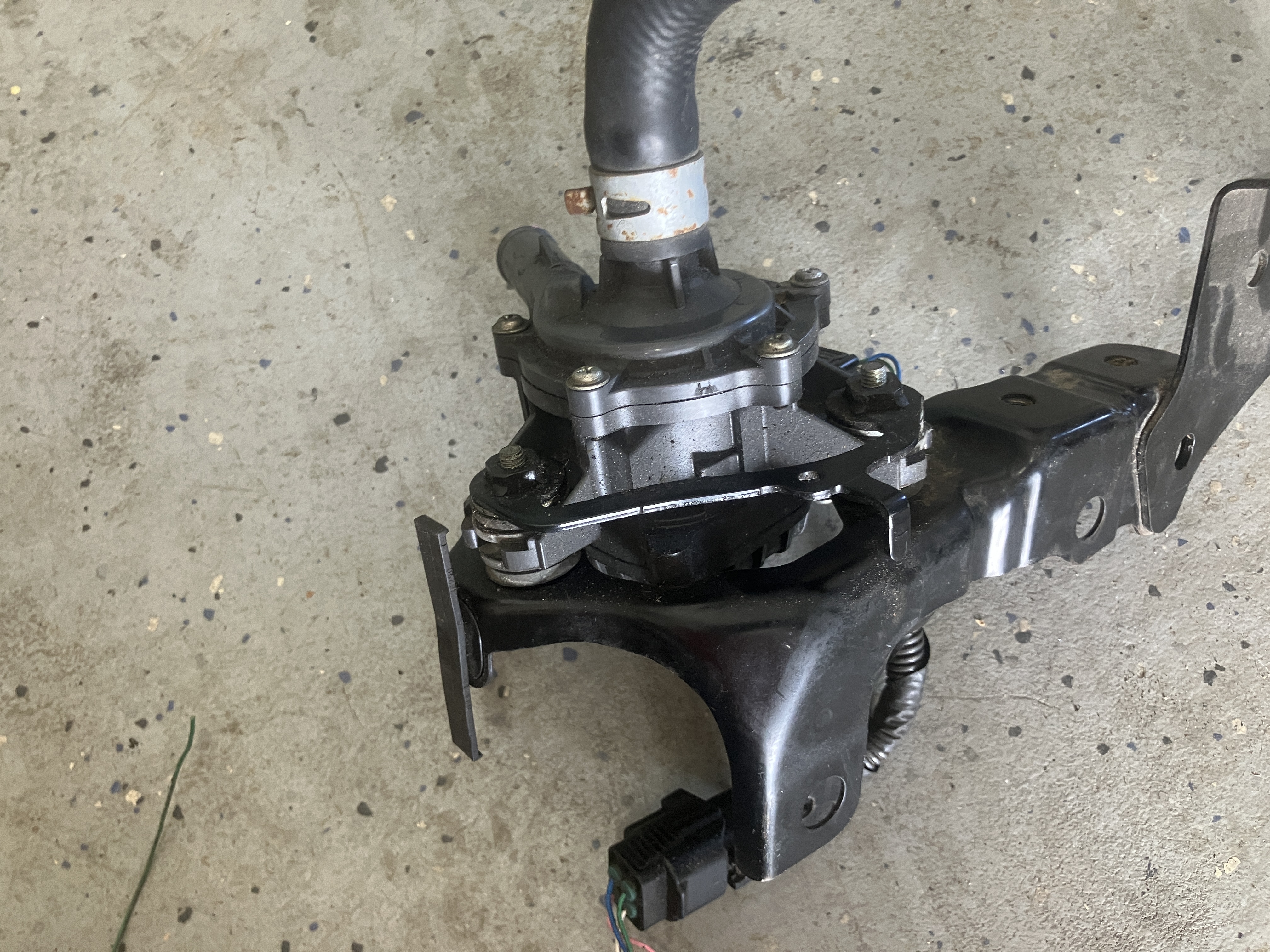 trying to use as much OEM stuff as possible, so here is the water pump from the same 3rd gen Prius as my inverter and transaxle, it's a simple 4 wire jobbie with: ground, pwm in, pwm out, and 12v, not necessarily in that order, I hope to get the pwm fingered out but for a test drive I may just run it at full speed, what say you?