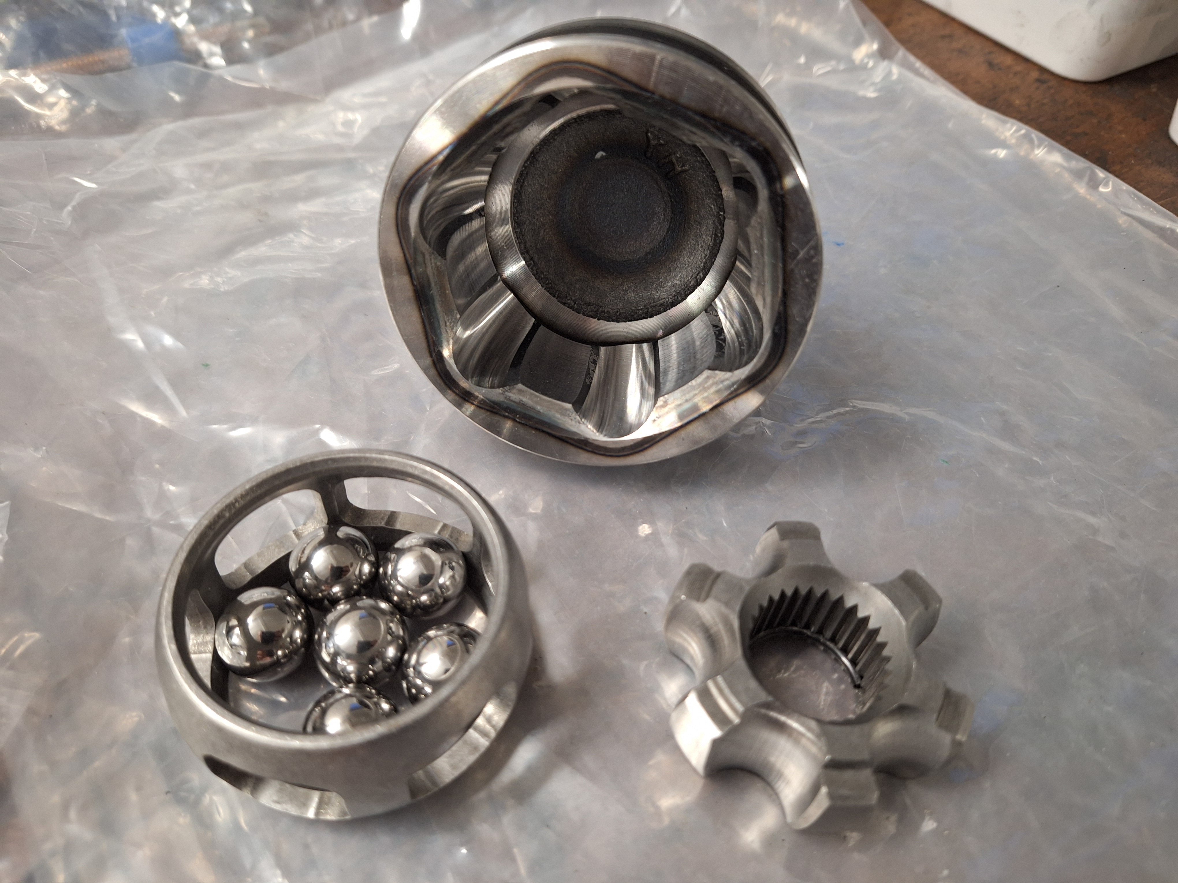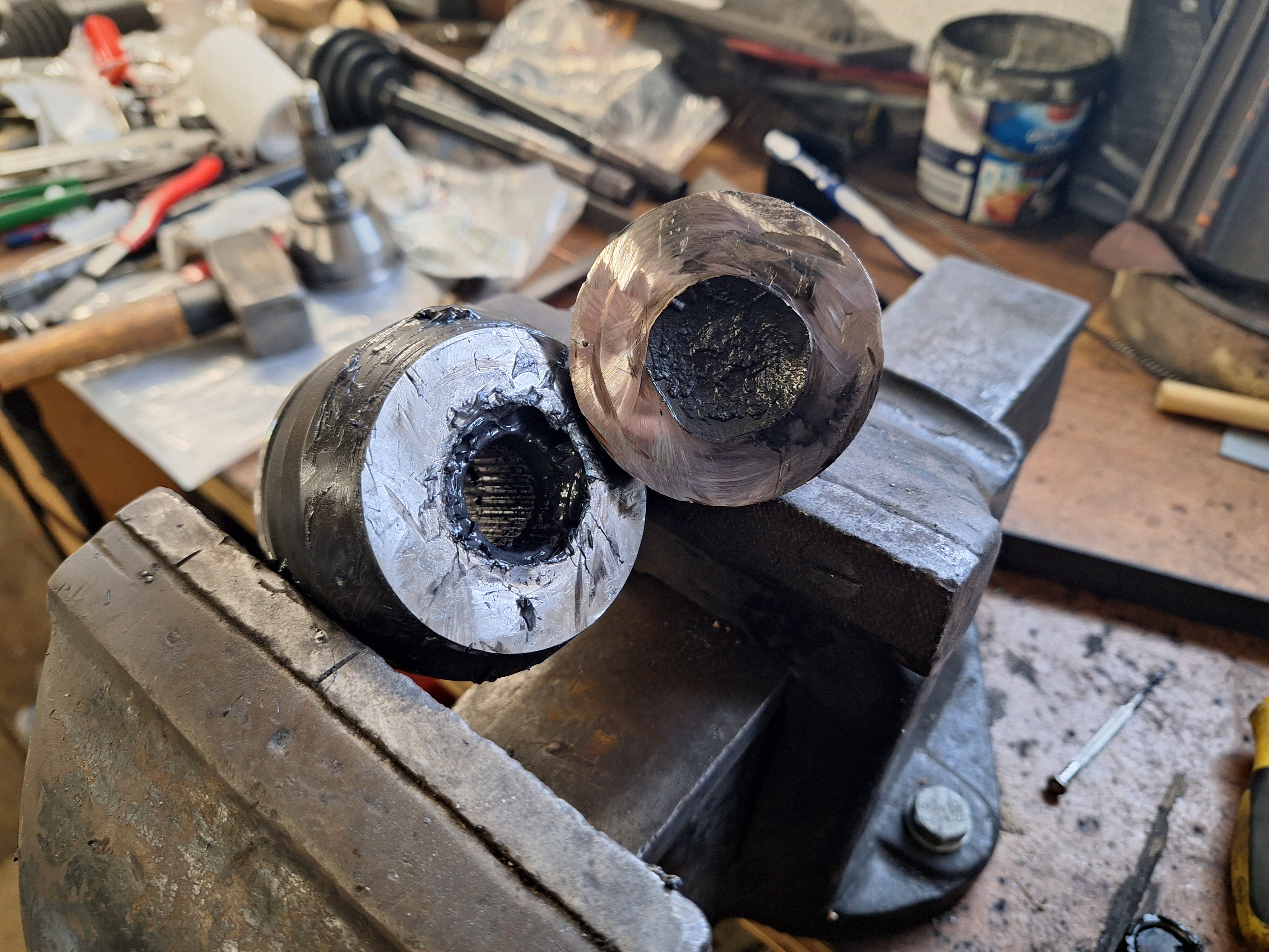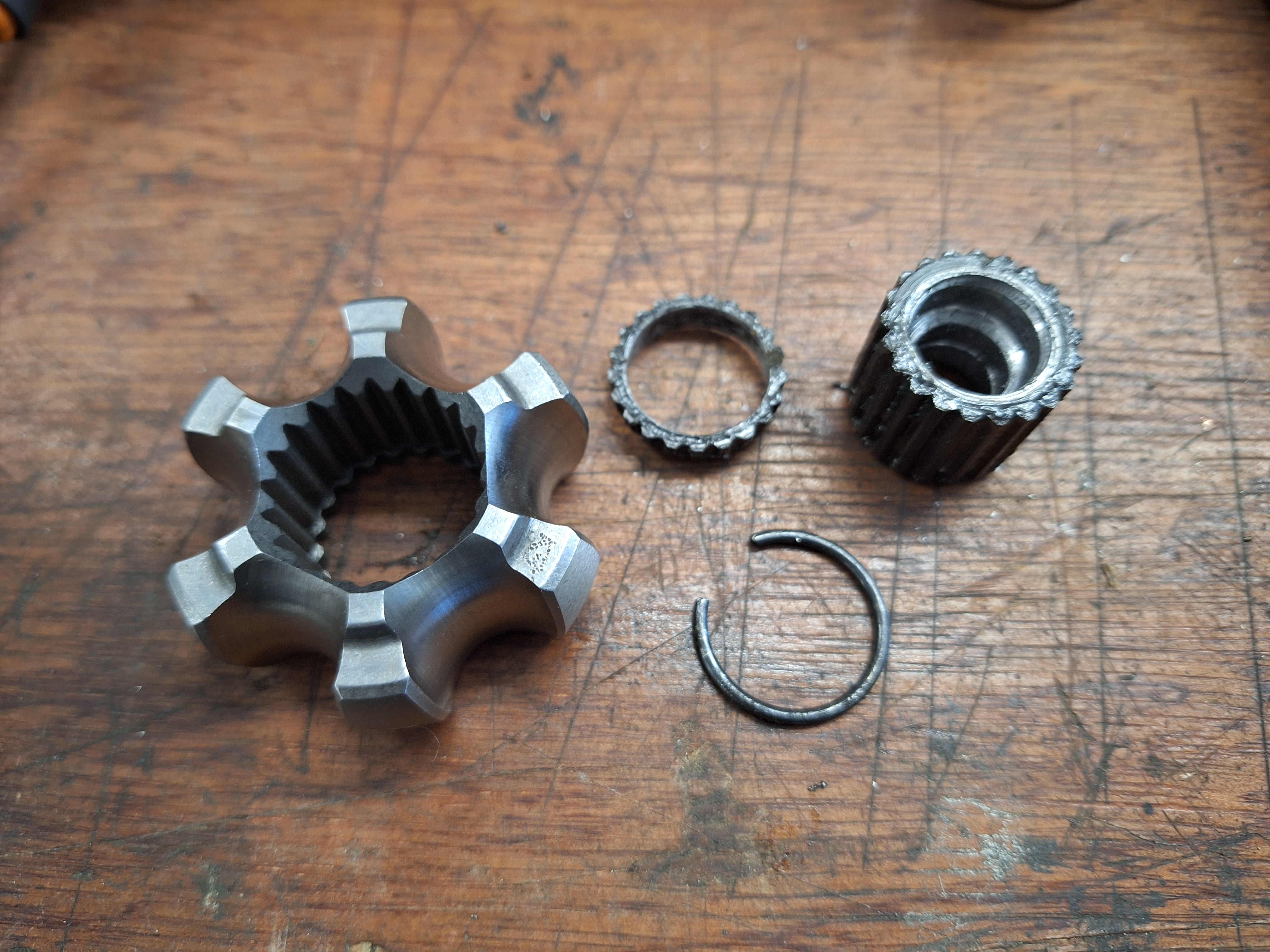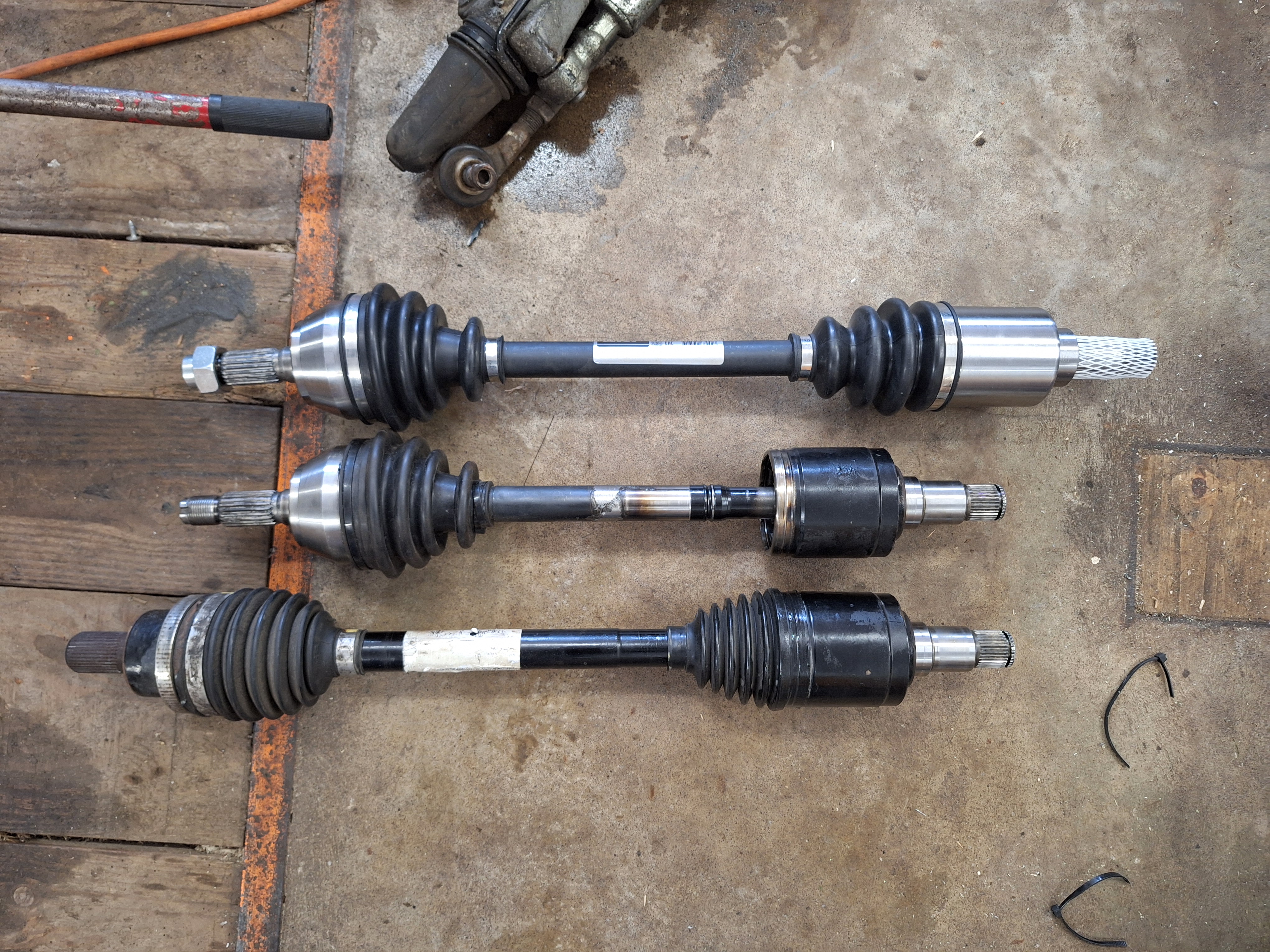From top to bottom: Saxo drive shaft, my hack job, Volvo drive shaft.