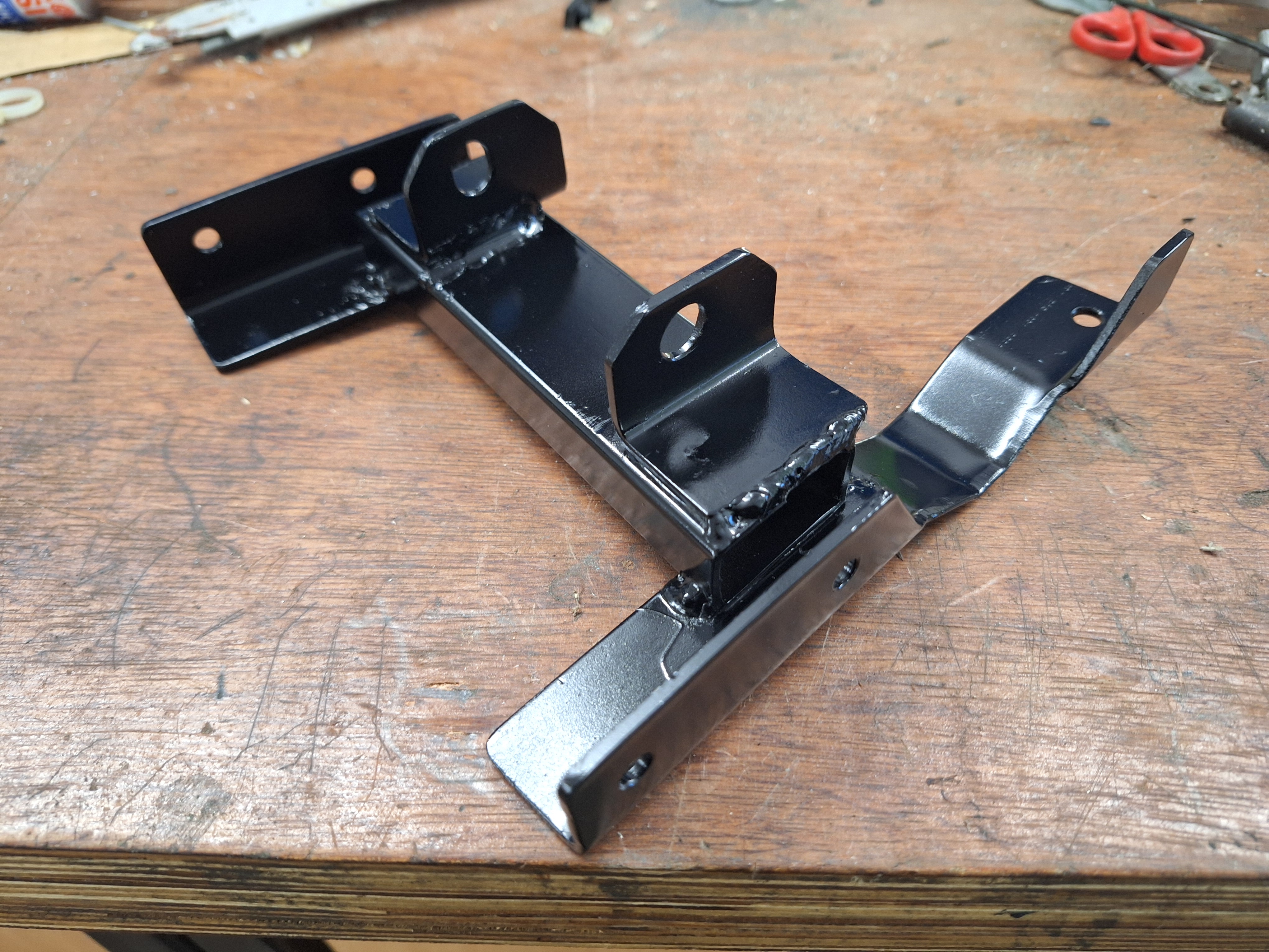 At the rear of the motor I mounted two rubber mounts normally used for the lower control arm. used a length of 20mm round bar turned down the ends to fit in the rubbers and a M12 thread on the end. Cut a piece of steel box section to bolt to the motor and welded to the round bar.